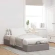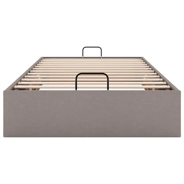 Ta okvir za posteljo otoman brezhibno združuje sodobno estetiko in praktično funkcionalnost ter vam ponuja rešitev za shranjevanje in udobno spanje. Mehak in trpežen material: Tkanina iz poliestra ponuja kombinacijo mehkobe, zračnosti in trpežnosti ter vam zagotavlja popolno udobje in prijetnost.Veliko prostora za shranjevanje pod posteljo: Ta posteljni okvir ima prostoren prostor za shranjevanje pod posteljo, kar poveča vaš prostor brez dodatne talne površine. Zagotavlja dovolj prostora za shranjevanje predmetov, kot so dodatne odeje, vzglavniki in sezonska oblačila, zaradi česar je idealen za manjše ali bolj zaprte prostore.Priročen mehanizem za dvigovanje: Vgrajeni hidravlični dvižni mehanizem omogoča enostaven dostop do stvari, shranjenih pod posteljo. S preprostim potegom ročaja se podnožje letve gladko dvigne, tako da lahko hitro in brez napora vzamete svoje predmete.Vzmetna škatla ni potrebna: Okvir postelje ima letveno podlago, ki zagotavlja odlično oporo in zračnost za ležišče, zato ni potrebna vzmetnica. Dobro je vedeti:Vzmetnica ni priložena tej postelji. Ponujamo različno izbiro ležišč. V naši trgovini si lahko ogledate ustrezne vzmetnice.Barva: TaupeMaterial: Tkanina (100 % poliester), kovina, vezan les, inženirski lesCelotne dimenzije: 203 x 80 x 23,5 cm (D x Š x V)Velikost primerne vzmetnice: 80 x 200 cm (Š x D) (vzmetnica ni priložena)Maks. nosilnost: 140 kgShranjevanje pod posteljoHidravličen dvižni mehanizemPotrebno sestavljanje: Da