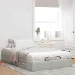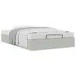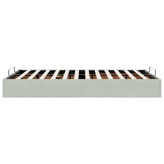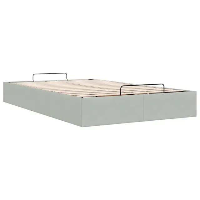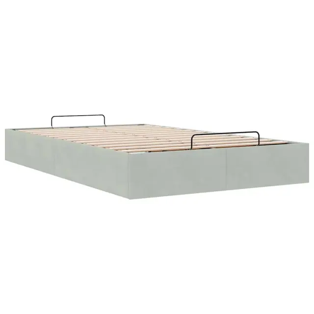 Ta okvir za posteljo otoman brezhibno združuje sodobno estetiko in praktično funkcionalnost ter vam ponuja rešitev za shranjevanje in udobno spanje. Mehak in udoben material: Vlažna tkanina iz žameta ima mehko in gladko površino, ki zagotavlja prijeten občutek ter vam zagotavlja toploto in popolno udobje.Veliko prostora za shranjevanje pod posteljo: Ta posteljni okvir ima prostoren prostor za shranjevanje pod posteljo, kar poveča vaš prostor brez dodatne talne površine. Zagotavlja dovolj prostora za shranjevanje predmetov, kot so dodatne odeje, vzglavniki in sezonska oblačila, zaradi česar je idealen za manjše ali bolj zaprte prostore.Priročen mehanizem za dvigovanje: Vgrajeni hidravlični dvižni mehanizem omogoča enostaven dostop do stvari, shranjenih pod posteljo. S preprostim potegom ročaja se podnožje letve gladko dvigne, tako da lahko hitro in brez napora vzamete svoje predmete.Vzmetna škatla ni potrebna: Okvir postelje ima letveno podlago, ki zagotavlja odlično oporo in zračnost za ležišče, zato ni potrebna vzmetnica. Dobro je vedeti:Vzmetnica ni priložena tej postelji. Ponujamo različno izbiro ležišč. V naši trgovini si lahko ogledate ustrezne vzmetnice.Barva: Svetlo sivaMaterial: Žamet (100 % poliester), kovina, vezan les, inženirski lesCelotne dimenzije: 203 x 120 x 23,5 cm (D x Š x V)Velikost primerne vzmetnice: 120 x 200 cm (Š x D) (vzmetnica ni priložena)Maks. nosilnost: 280 kgShranjevanje pod posteljoHidravličen dvižni mehanizemPotrebno sestavljanje: Da