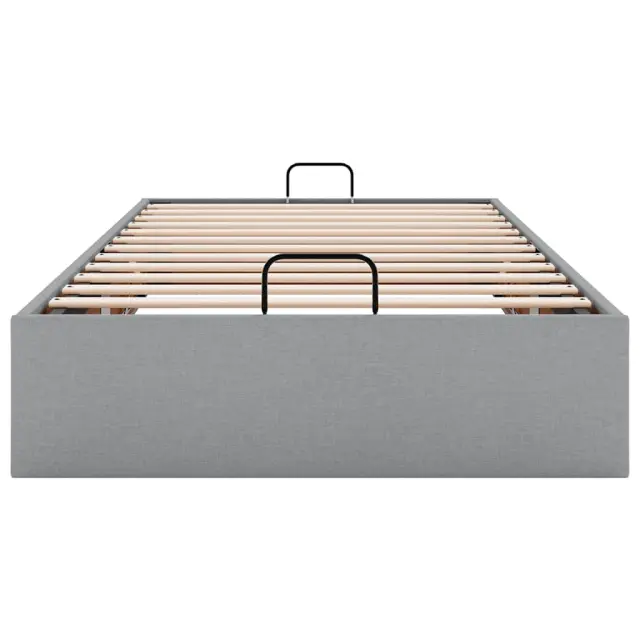 Ta okvir za posteljo otoman brezhibno združuje sodobno estetiko in praktično funkcionalnost ter vam ponuja rešitev za shranjevanje in udobno spanje. Mehak in trpežen material: Tkanina iz poliestra ponuja kombinacijo mehkobe, zračnosti in trpežnosti ter vam zagotavlja popolno udobje in prijetnost.Veliko prostora za shranjevanje pod posteljo: Ta posteljni okvir ima prostoren prostor za shranjevanje pod posteljo, kar poveča vaš prostor brez dodatne talne površine. Zagotavlja dovolj prostora za shranjevanje predmetov, kot so dodatne odeje, vzglavniki in sezonska oblačila, zaradi česar je idealen za manjše ali bolj zaprte prostore.Priročen mehanizem za dvigovanje: Vgrajeni hidravlični dvižni mehanizem omogoča enostaven dostop do stvari, shranjenih pod posteljo. S preprostim potegom ročaja se podnožje letve gladko dvigne, tako da lahko hitro in brez napora vzamete svoje predmete.Vzmetna škatla ni potrebna: Okvir postelje ima letveno podlago, ki zagotavlja odlično oporo in zračnost za ležišče, zato ni potrebna vzmetnica. Dobro je vedeti:Vzmetnica ni priložena tej postelji. Ponujamo različno izbiro ležišč. V naši trgovini si lahko ogledate ustrezne vzmetnice.Barva: Svetlo sivaMaterial: Tkanina (100 % poliester), kovina, vezan les, inženirski lesCelotne dimenzije: 203 x 100 x 23,5 cm (D x Š x V)Velikost primerne vzmetnice: 100 x 200 cm (Š x D) (vzmetnica ni priložena)Maks. nosilnost: 140 kgShranjevanje pod posteljoHidravličen dvižni mehanizemPotrebno sestavljanje: Da