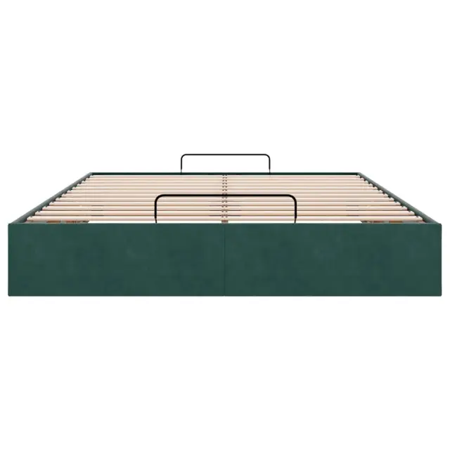 Ta okvir za posteljo otoman brezhibno združuje sodobno estetiko in praktično funkcionalnost ter vam ponuja rešitev za shranjevanje in udobno spanje. Mehak in udoben material: Vlažna tkanina iz žameta ima mehko in gladko površino, ki zagotavlja prijeten občutek ter vam zagotavlja toploto in popolno udobje.Veliko prostora za shranjevanje pod posteljo: Ta posteljni okvir ima prostoren prostor za shranjevanje pod posteljo, kar poveča vaš prostor brez dodatne talne površine. Zagotavlja dovolj prostora za shranjevanje predmetov, kot so dodatne odeje, vzglavniki in sezonska oblačila, zaradi česar je idealen za manjše ali bolj zaprte prostore.Priročen mehanizem za dvigovanje: Vgrajeni hidravlični dvižni mehanizem omogoča enostaven dostop do stvari, shranjenih pod posteljo. S preprostim potegom ročaja se podnožje letve gladko dvigne, tako da lahko hitro in brez napora vzamete svoje predmete.Vzmetna škatla ni potrebna: Okvir postelje ima letveno podlago, ki zagotavlja odlično oporo in zračnost za ležišče, zato ni potrebna vzmetnica. Dobro je vedeti:Vzmetnica ni priložena tej postelji. Ponujamo različno izbiro ležišč. V naši trgovini si lahko ogledate ustrezne vzmetnice.Barva: Temno zelenaMaterial: Žamet (100 % poliester), kovina, vezan les, inženirski lesCelotne dimenzije: 203 x 140 x 23,5 cm (D x Š x V)Velikost primerne vzmetnice: 140 x 200 cm (Š x D) (vzmetnica ni priložena)Maks. nosilnost: 280 kgShranjevanje pod posteljoHidravličen dvižni mehanizemPotrebno sestavljanje: Da
