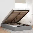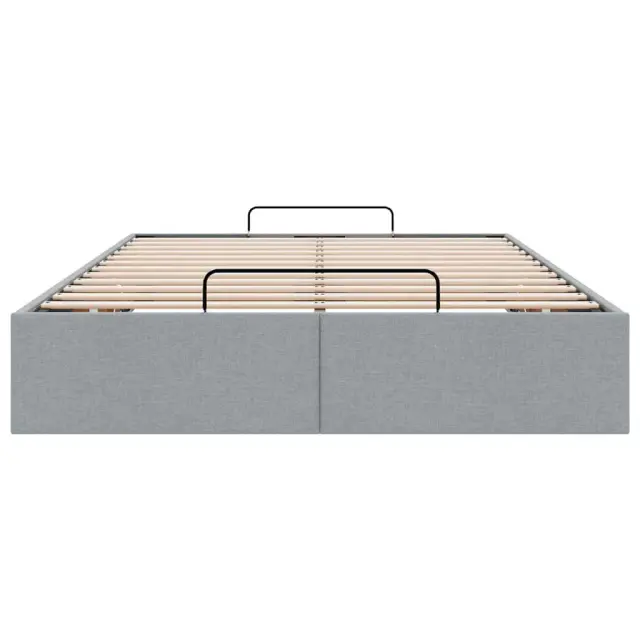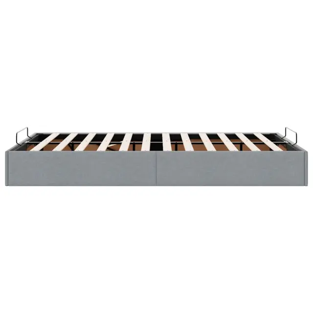 Ta okvir za posteljo otoman brezhibno združuje sodobno estetiko in praktično funkcionalnost ter vam ponuja rešitev za shranjevanje in udobno spanje. Mehak in trpežen material: Tkanina iz poliestra ponuja kombinacijo mehkobe, zračnosti in trpežnosti ter vam zagotavlja popolno udobje in prijetnost.Veliko prostora za shranjevanje pod posteljo: Ta posteljni okvir ima prostoren prostor za shranjevanje pod posteljo, kar poveča vaš prostor brez dodatne talne površine. Zagotavlja dovolj prostora za shranjevanje predmetov, kot so dodatne odeje, vzglavniki in sezonska oblačila, zaradi česar je idealen za manjše ali bolj zaprte prostore.Priročen mehanizem za dvigovanje: Vgrajeni hidravlični dvižni mehanizem omogoča enostaven dostop do stvari, shranjenih pod posteljo. S preprostim potegom ročaja se podnožje letve gladko dvigne, tako da lahko hitro in brez napora vzamete svoje predmete.Vzmetna škatla ni potrebna: Okvir postelje ima letveno podlago, ki zagotavlja odlično oporo in zračnost za ležišče, zato ni potrebna vzmetnica. Dobro je vedeti:Vzmetnica ni priložena tej postelji. Ponujamo različno izbiro ležišč. V naši trgovini si lahko ogledate ustrezne vzmetnice.Barva: Svetlo sivaMaterial: Tkanina (100 % poliester), kovina, vezan les, inženirski lesCelotne dimenzije: 203 x 120 x 23,5 cm (D x Š x V)Velikost primerne vzmetnice: 120 x 200 cm (Š x D) (vzmetnica ni priložena)Maks. nosilnost: 140 kgShranjevanje pod posteljoHidravličen dvižni mehanizemPotrebno sestavljanje: Da