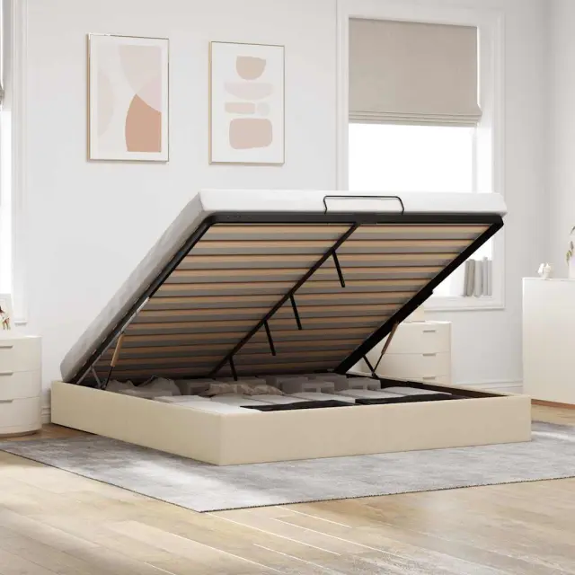 Otomanski Posteljni okvir - Dvoposteljna postelja - Zakonska postelja brez vzmetnice krem 200x200 cm blago-J486
