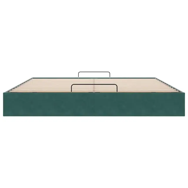 Ta okvir za posteljo otoman brezhibno združuje sodobno estetiko in praktično funkcionalnost ter vam ponuja rešitev za shranjevanje in udobno spanje. Mehak in udoben material: Vlažna tkanina iz žameta ima mehko in gladko površino, ki zagotavlja prijeten občutek ter vam zagotavlja toploto in popolno udobje.Veliko prostora za shranjevanje pod posteljo: Ta posteljni okvir ima prostoren prostor za shranjevanje pod posteljo, kar poveča vaš prostor brez dodatne talne površine. Zagotavlja dovolj prostora za shranjevanje predmetov, kot so dodatne odeje, vzglavniki in sezonska oblačila, zaradi česar je idealen za manjše ali bolj zaprte prostore.Priročen mehanizem za dvigovanje: Vgrajeni hidravlični dvižni mehanizem omogoča enostaven dostop do stvari, shranjenih pod posteljo. S preprostim potegom ročaja se podnožje letve gladko dvigne, tako da lahko hitro in brez napora vzamete svoje predmete.Vzmetna škatla ni potrebna: Okvir postelje ima letveno podlago, ki zagotavlja odlično oporo in zračnost za ležišče, zato ni potrebna vzmetnica. Dobro je vedeti:Vzmetnica ni priložena tej postelji. Ponujamo različno izbiro ležišč. V naši trgovini si lahko ogledate ustrezne vzmetnice.Barva: Temno zelenaMaterial: Žamet (100 % poliester), kovina, vezan les, inženirski lesCelotne dimenzije: 203 x 160 x 23,5 cm (D x Š x V)Velikost primerne vzmetnice: 160 x 200 cm (Š x D) (vzmetnica ni priložena)Maks. nosilnost: 280 kgShranjevanje pod posteljoHidravličen dvižni mehanizemPotrebno sestavljanje: Da