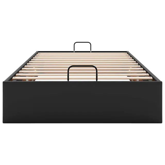 Ta okvir za posteljo otoman brezhibno združuje sodobno estetiko in praktično funkcionalnost ter vam ponuja rešitev za shranjevanje in udobno spanje. Dolgotrajno in enostavno vzdrževanje: Umetno usnje je zelo trpežen material, ki je odporen na madeže, zato ga zlahka očistite z vlažno krpo. Njegova gladka površina mu daje eleganten videz, ki spominja na pravo usnje.Veliko prostora za shranjevanje pod posteljo: Ta posteljni okvir ima prostoren prostor za shranjevanje pod posteljo, kar poveča vaš prostor brez dodatne talne površine. Zagotavlja dovolj prostora za shranjevanje predmetov, kot so dodatne odeje, vzglavniki in sezonska oblačila, zaradi česar je idealen za manjše ali bolj zaprte prostore.Priročen mehanizem za dvigovanje: Vgrajeni hidravlični dvižni mehanizem omogoča enostaven dostop do stvari, shranjenih pod posteljo. S preprostim potegom ročaja se podnožje letve gladko dvigne, tako da lahko hitro in brez napora vzamete svoje predmete.Vzmetna škatla ni potrebna: Okvir postelje ima letveno podlago, ki zagotavlja odlično oporo in zračnost za ležišče, zato ni potrebna vzmetnica. Dobro je vedeti:Vzmetnica ni priložena tej postelji. Ponujamo različno izbiro ležišč. V naši trgovini si lahko ogledate ustrezne vzmetnice.Barva: ČrnaMaterial: Umetno usnje (75 % polivinilklorid, 5 % bombaž, 20 % poliester), kovina, vezan les, konstruiran lesCelotne dimenzije: 203 x 90 x 23,5 cm (D x Š x V)Velikost primerne vzmetnice: 90 x 200 cm (Š x D) (vzmetnica ni priložena)Maks. nosilnost: 140 kgShranjevanje pod posteljoHidravličen dvižni mehanizemPotrebno sestavljanje: Da