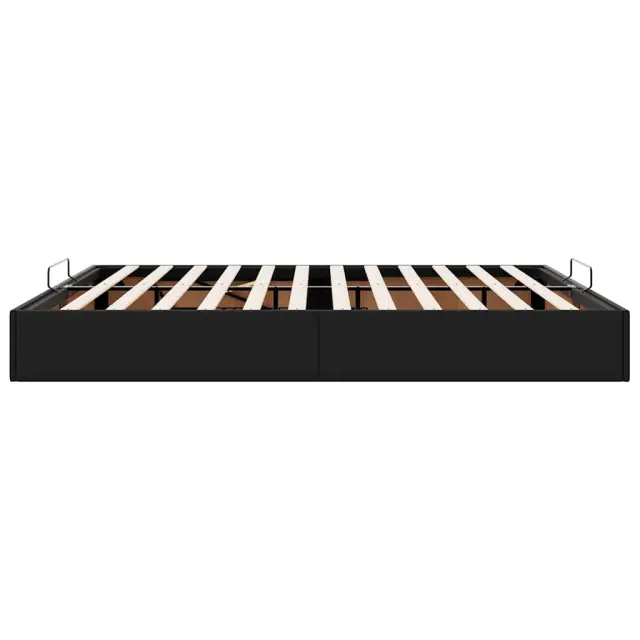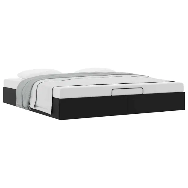 Ta okvir za posteljo otoman brezhibno združuje sodobno estetiko in praktično funkcionalnost ter vam ponuja rešitev za shranjevanje in udobno spanje. Dolgotrajno in enostavno vzdrževanje: Umetno usnje je zelo trpežen material, ki je odporen na madeže, zato ga zlahka očistite z vlažno krpo. Njegova gladka površina mu daje eleganten videz, ki spominja na pravo usnje.Veliko prostora za shranjevanje pod posteljo: Ta posteljni okvir ima prostoren prostor za shranjevanje pod posteljo, kar poveča vaš prostor brez dodatne talne površine. Zagotavlja dovolj prostora za shranjevanje predmetov, kot so dodatne odeje, vzglavniki in sezonska oblačila, zaradi česar je idealen za manjše ali bolj zaprte prostore.Priročen mehanizem za dvigovanje: Vgrajeni hidravlični dvižni mehanizem omogoča enostaven dostop do stvari, shranjenih pod posteljo. S preprostim potegom ročaja se podnožje letve gladko dvigne, tako da lahko hitro in brez napora vzamete svoje predmete.Vzmetna škatla ni potrebna: Okvir postelje ima letveno podlago, ki zagotavlja odlično oporo in zračnost za ležišče, zato ni potrebna vzmetnica. Dobro je vedeti:Vzmetnica ni priložena tej postelji. Ponujamo različno izbiro ležišč. V naši trgovini si lahko ogledate ustrezne vzmetnice.Barva: ČrnaMaterial: Umetno usnje (75 % polivinilklorid, 5 % bombaž, 20 % poliester), kovina, vezan les, konstruiran lesCelotne dimenzije: 203 x 200 x 23,5 cm (D x Š x V)Velikost primerne vzmetnice: 200 x 200 cm (Š x D) (vzmetnica ni priložena)Maks. nosilnost: 280 kgShranjevanje pod posteljoHidravličen dvižni mehanizemPotrebno sestavljanje: Da
