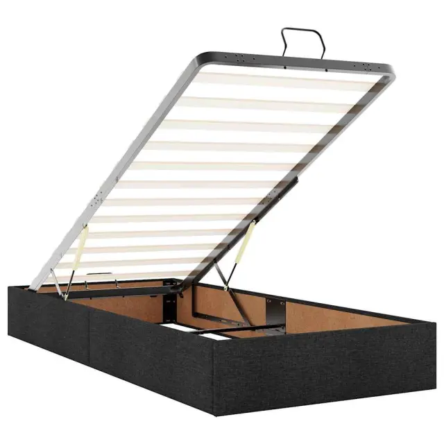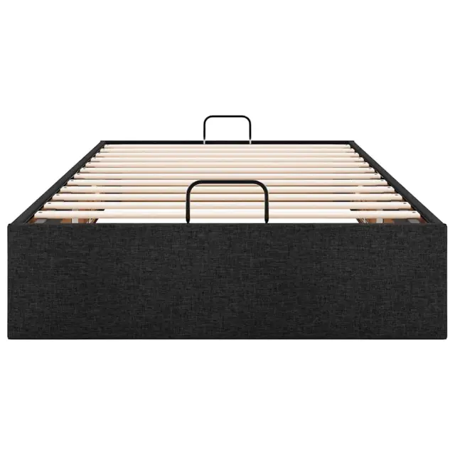Ta okvir za posteljo otoman brezhibno združuje sodobno estetiko in praktično funkcionalnost ter vam ponuja rešitev za shranjevanje in udobno spanje. Mehak in trpežen material: Tkanina iz poliestra ponuja kombinacijo mehkobe, zračnosti in trpežnosti ter vam zagotavlja popolno udobje in prijetnost.Veliko prostora za shranjevanje pod posteljo: Ta posteljni okvir ima prostoren prostor za shranjevanje pod posteljo, kar poveča vaš prostor brez dodatne talne površine. Zagotavlja dovolj prostora za shranjevanje predmetov, kot so dodatne odeje, vzglavniki in sezonska oblačila, zaradi česar je idealen za manjše ali bolj zaprte prostore.Priročen mehanizem za dvigovanje: Vgrajeni hidravlični dvižni mehanizem omogoča enostaven dostop do stvari, shranjenih pod posteljo. S preprostim potegom ročaja se podnožje letve gladko dvigne, tako da lahko hitro in brez napora vzamete svoje predmete.Vzmetna škatla ni potrebna: Okvir postelje ima letveno podlago, ki zagotavlja odlično oporo in zračnost za ležišče, zato ni potrebna vzmetnica. Dobro je vedeti:Vzmetnica ni priložena tej postelji. Ponujamo različno izbiro ležišč. V naši trgovini si lahko ogledate ustrezne vzmetnice.Barva: ČrnaMaterial: Tkanina (100 % poliester), kovina, vezan les, inženirski lesCelotne dimenzije: 203 x 90 x 23,5 cm (D x Š x V)Velikost primerne vzmetnice: 90 x 200 cm (Š x D) (vzmetnica ni priložena)Maks. nosilnost: 140 kgShranjevanje pod posteljoHidravličen dvižni mehanizemPotrebno sestavljanje: Da