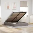 Ta okvir za posteljo otoman brezhibno združuje sodobno estetiko in praktično funkcionalnost ter vam ponuja rešitev za shranjevanje in udobno spanje. Mehak in trpežen material: Tkanina iz poliestra ponuja kombinacijo mehkobe, zračnosti in trpežnosti ter vam zagotavlja popolno udobje in prijetnost.Veliko prostora za shranjevanje pod posteljo: Ta posteljni okvir ima prostoren prostor za shranjevanje pod posteljo, kar poveča vaš prostor brez dodatne talne površine. Zagotavlja dovolj prostora za shranjevanje predmetov, kot so dodatne odeje, vzglavniki in sezonska oblačila, zaradi česar je idealen za manjše ali bolj zaprte prostore.Priročen mehanizem za dvigovanje: Vgrajeni hidravlični dvižni mehanizem omogoča enostaven dostop do stvari, shranjenih pod posteljo. S preprostim potegom ročaja se podnožje letve gladko dvigne, tako da lahko hitro in brez napora vzamete svoje predmete.Vzmetna škatla ni potrebna: Okvir postelje ima letveno podlago, ki zagotavlja odlično oporo in zračnost za ležišče, zato ni potrebna vzmetnica. Dobro je vedeti:Vzmetnica ni priložena tej postelji. Ponujamo različno izbiro ležišč. V naši trgovini si lahko ogledate ustrezne vzmetnice.Barva: TaupeMaterial: Tkanina (100 % poliester), kovina, vezan les, inženirski lesCelotne dimenzije: 203 x 140 x 23,5 cm (D x Š x V)Velikost primerne vzmetnice: 140 x 200 cm (Š x D) (vzmetnica ni priložena)Maks. nosilnost: 140 kgShranjevanje pod posteljoHidravličen dvižni mehanizemPotrebno sestavljanje: Da