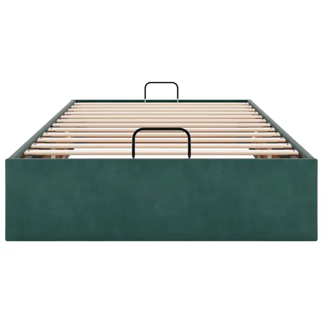 Ta okvir za posteljo otoman brezhibno združuje sodobno estetiko in praktično funkcionalnost ter vam ponuja rešitev za shranjevanje in udobno spanje. Mehak in udoben material: Vlažna tkanina iz žameta ima mehko in gladko površino, ki zagotavlja prijeten občutek ter vam zagotavlja toploto in popolno udobje.Veliko prostora za shranjevanje pod posteljo: Ta posteljni okvir ima prostoren prostor za shranjevanje pod posteljo, kar poveča vaš prostor brez dodatne talne površine. Zagotavlja dovolj prostora za shranjevanje predmetov, kot so dodatne odeje, vzglavniki in sezonska oblačila, zaradi česar je idealen za manjše ali bolj zaprte prostore.Priročen mehanizem za dvigovanje: Vgrajeni hidravlični dvižni mehanizem omogoča enostaven dostop do stvari, shranjenih pod posteljo. S preprostim potegom ročaja se podnožje letve gladko dvigne, tako da lahko hitro in brez napora vzamete svoje predmete.Vzmetna škatla ni potrebna: Okvir postelje ima letveno podlago, ki zagotavlja odlično oporo in zračnost za ležišče, zato ni potrebna vzmetnica. Dobro je vedeti:Vzmetnica ni priložena tej postelji. Ponujamo različno izbiro ležišč. V naši trgovini si lahko ogledate ustrezne vzmetnice.Barva: Temno zelenaMaterial: Žamet (100 % poliester), kovina, vezan les, inženirski lesCelotne dimenzije: 203 x 90 x 23,5 cm (D x Š x V)Velikost primerne vzmetnice: 90 x 200 cm (Š x D) (vzmetnica ni priložena)Maks. nosilnost: 140 kgShranjevanje pod posteljoHidravličen dvižni mehanizemPotrebno sestavljanje: Da