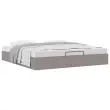 Ta okvir za posteljo otoman brezhibno združuje sodobno estetiko in praktično funkcionalnost ter vam ponuja rešitev za shranjevanje in udobno spanje. Mehak in trpežen material: Tkanina iz poliestra ponuja kombinacijo mehkobe, zračnosti in trpežnosti ter vam zagotavlja popolno udobje in prijetnost.Veliko prostora za shranjevanje pod posteljo: Ta posteljni okvir ima prostoren prostor za shranjevanje pod posteljo, kar poveča vaš prostor brez dodatne talne površine. Zagotavlja dovolj prostora za shranjevanje predmetov, kot so dodatne odeje, vzglavniki in sezonska oblačila, zaradi česar je idealen za manjše ali bolj zaprte prostore.Priročen mehanizem za dvigovanje: Vgrajeni hidravlični dvižni mehanizem omogoča enostaven dostop do stvari, shranjenih pod posteljo. S preprostim potegom ročaja se podnožje letve gladko dvigne, tako da lahko hitro in brez napora vzamete svoje predmete.Vzmetna škatla ni potrebna: Okvir postelje ima letveno podlago, ki zagotavlja odlično oporo in zračnost za ležišče, zato ni potrebna vzmetnica. Dobro je vedeti:Vzmetnica ni priložena tej postelji. Ponujamo različno izbiro ležišč. V naši trgovini si lahko ogledate ustrezne vzmetnice.Barva: TaupeMaterial: Tkanina (100 % poliester), kovina, vezan les, inženirski lesCelotne dimenzije: 203 x 180 x 23,5 cm (D x Š x V)Velikost primerne vzmetnice: 180 x 200 cm (Š x D) (vzmetnica ni priložena)Maks. nosilnost: 140 kgShranjevanje pod posteljoHidravličen dvižni mehanizemPotrebno sestavljanje: Da