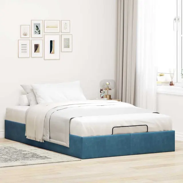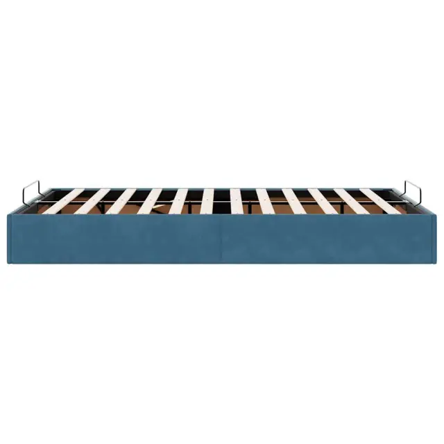 Ta okvir za posteljo otoman brezhibno združuje sodobno estetiko in praktično funkcionalnost ter vam ponuja rešitev za shranjevanje in udobno spanje. Mehak in udoben material: Vlažna tkanina iz žameta ima mehko in gladko površino, ki zagotavlja prijeten občutek ter vam zagotavlja toploto in popolno udobje.Veliko prostora za shranjevanje pod posteljo: Ta posteljni okvir ima prostoren prostor za shranjevanje pod posteljo, kar poveča vaš prostor brez dodatne talne površine. Zagotavlja dovolj prostora za shranjevanje predmetov, kot so dodatne odeje, vzglavniki in sezonska oblačila, zaradi česar je idealen za manjše ali bolj zaprte prostore.Priročen mehanizem za dvigovanje: Vgrajeni hidravlični dvižni mehanizem omogoča enostaven dostop do stvari, shranjenih pod posteljo. S preprostim potegom ročaja se podnožje letve gladko dvigne, tako da lahko hitro in brez napora vzamete svoje predmete.Vzmetna škatla ni potrebna: Okvir postelje ima letveno podlago, ki zagotavlja odlično oporo in zračnost za ležišče, zato ni potrebna vzmetnica. Dobro je vedeti:Vzmetnica ni priložena tej postelji. Ponujamo različno izbiro ležišč. V naši trgovini si lahko ogledate ustrezne vzmetnice.Barva: Temno modraMaterial: Žamet (100 % poliester), kovina, vezan les, inženirski lesCelotne dimenzije: 193 x 120 x 23,5 cm (D x Š x V)Velikost primerne vzmetnice: 120 x 190 cm (Š x D) (vzmetnica ni priložena)Maks. nosilnost: 280 kgShranjevanje pod posteljoHidravličen dvižni mehanizemPotrebno sestavljanje: Da