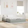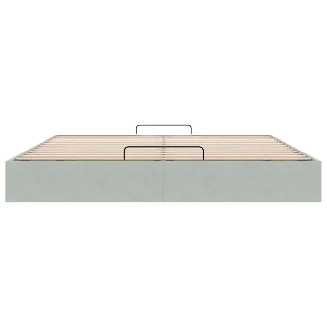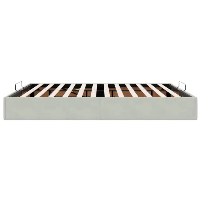 Ta okvir za posteljo otoman brezhibno združuje sodobno estetiko in praktično funkcionalnost ter vam ponuja rešitev za shranjevanje in udobno spanje. Mehak in udoben material: Vlažna tkanina iz žameta ima mehko in gladko površino, ki zagotavlja prijeten občutek ter vam zagotavlja toploto in popolno udobje.Veliko prostora za shranjevanje pod posteljo: Ta posteljni okvir ima prostoren prostor za shranjevanje pod posteljo, kar poveča vaš prostor brez dodatne talne površine. Zagotavlja dovolj prostora za shranjevanje predmetov, kot so dodatne odeje, vzglavniki in sezonska oblačila, zaradi česar je idealen za manjše ali bolj zaprte prostore.Priročen mehanizem za dvigovanje: Vgrajeni hidravlični dvižni mehanizem omogoča enostaven dostop do stvari, shranjenih pod posteljo. S preprostim potegom ročaja se podnožje letve gladko dvigne, tako da lahko hitro in brez napora vzamete svoje predmete.Vzmetna škatla ni potrebna: Okvir postelje ima letveno podlago, ki zagotavlja odlično oporo in zračnost za ležišče, zato ni potrebna vzmetnica. Dobro je vedeti:Vzmetnica ni priložena tej postelji. Ponujamo različno izbiro ležišč. V naši trgovini si lahko ogledate ustrezne vzmetnice.Barva: Svetlo sivaMaterial: Žamet (100 % poliester), kovina, vezan les, inženirski lesCelotne dimenzije: 203 x 160 x 23,5 cm (D x Š x V)Velikost primerne vzmetnice: 160 x 200 cm (Š x D) (vzmetnica ni priložena)Maks. nosilnost: 280 kgShranjevanje pod posteljoHidravličen dvižni mehanizemPotrebno sestavljanje: Da