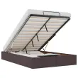 Ta okvir za posteljo otoman brezhibno združuje sodobno estetiko in praktično funkcionalnost ter vam ponuja rešitev za shranjevanje in udobno spanje. Mehak in trpežen material: Tkanina iz poliestra ponuja kombinacijo mehkobe, zračnosti in trpežnosti ter vam zagotavlja popolno udobje in prijetnost.Veliko prostora za shranjevanje pod posteljo: Ta posteljni okvir ima prostoren prostor za shranjevanje pod posteljo, kar poveča vaš prostor brez dodatne talne površine. Zagotavlja dovolj prostora za shranjevanje predmetov, kot so dodatne odeje, vzglavniki in sezonska oblačila, zaradi česar je idealen za manjše ali bolj zaprte prostore.Priročen mehanizem za dvigovanje: Vgrajeni hidravlični dvižni mehanizem omogoča enostaven dostop do stvari, shranjenih pod posteljo. S preprostim potegom ročaja se podnožje letve gladko dvigne, tako da lahko hitro in brez napora vzamete svoje predmete.Vzmetna škatla ni potrebna: Okvir postelje ima letveno podlago, ki zagotavlja odlično oporo in zračnost za ležišče, zato ni potrebna vzmetnica. Dobro je vedeti:Vzmetnica ni priložena tej postelji. Ponujamo različno izbiro ležišč. V naši trgovini si lahko ogledate ustrezne vzmetnice.Barva: Temno rjavaMaterial: Tkanina (100 % poliester), kovina, vezan les, inženirski lesCelotne dimenzije: 193 x 120 x 23,5 cm (D x Š x V)Velikost primerne vzmetnice: 120 x 190 cm (Š x D) (vzmetnica ni priložena)Maks. nosilnost: 140 kgShranjevanje pod posteljoHidravličen dvižni mehanizemPotrebno sestavljanje: Da