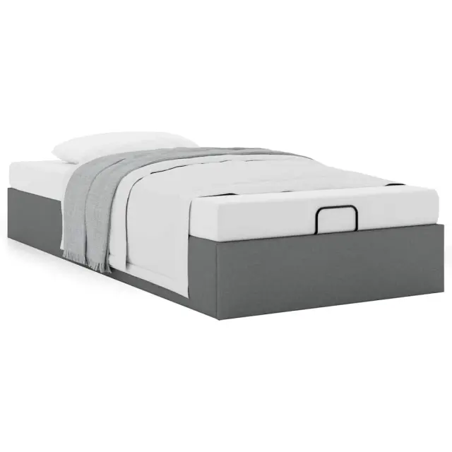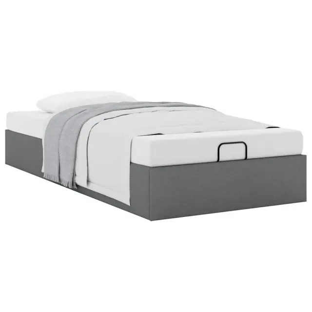 Ta okvir za posteljo otoman brezhibno združuje sodobno estetiko in praktično funkcionalnost ter vam ponuja rešitev za shranjevanje in udobno spanje. Mehak in trpežen material: Tkanina iz poliestra ponuja kombinacijo mehkobe, zračnosti in trpežnosti ter vam zagotavlja popolno udobje in prijetnost.Veliko prostora za shranjevanje pod posteljo: Ta posteljni okvir ima prostoren prostor za shranjevanje pod posteljo, kar poveča vaš prostor brez dodatne talne površine. Zagotavlja dovolj prostora za shranjevanje predmetov, kot so dodatne odeje, vzglavniki in sezonska oblačila, zaradi česar je idealen za manjše ali bolj zaprte prostore.Priročen mehanizem za dvigovanje: Vgrajeni hidravlični dvižni mehanizem omogoča enostaven dostop do stvari, shranjenih pod posteljo. S preprostim potegom ročaja se podnožje letve gladko dvigne, tako da lahko hitro in brez napora vzamete svoje predmete.Vzmetna škatla ni potrebna: Okvir postelje ima letveno podlago, ki zagotavlja odlično oporo in zračnost za ležišče, zato ni potrebna vzmetnica. Dobro je vedeti:Vzmetnica ni priložena tej postelji. Ponujamo različno izbiro ležišč. V naši trgovini si lahko ogledate ustrezne vzmetnice.Barva: Temno sivaMaterial: Tkanina (100 % poliester), kovina, vezan les, inženirski lesCelotne dimenzije: 193 x 90 x 23,5 cm (D x Š x V)Velikost primerne vzmetnice: 90 x 190 cm (Š x D) (vzmetnica ni priložena)Maks. nosilnost: 140 kgShranjevanje pod posteljoHidravličen dvižni mehanizemPotrebno sestavljanje: Da