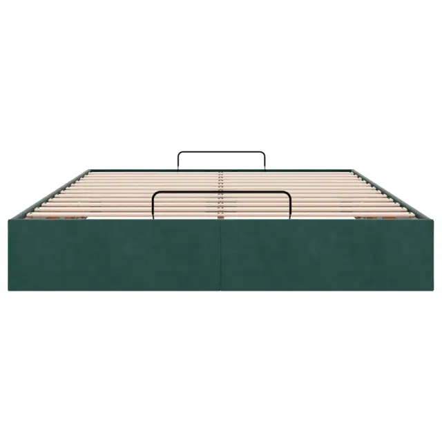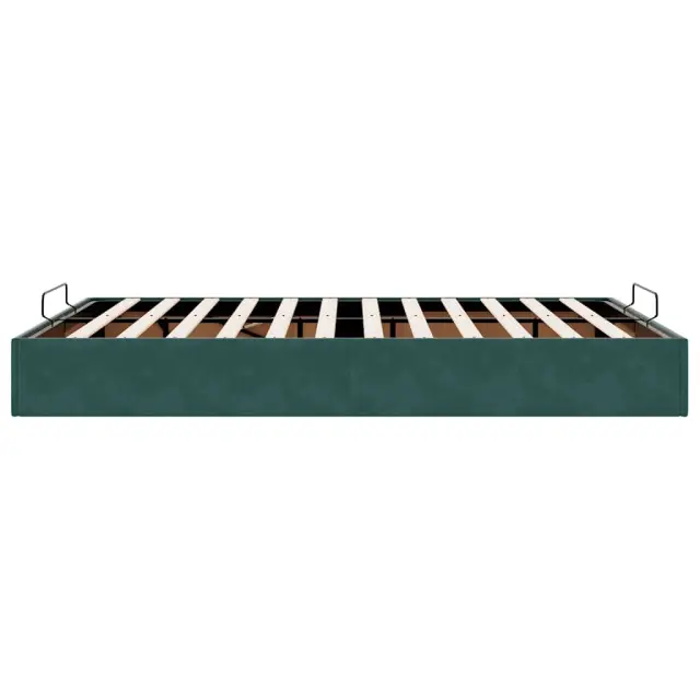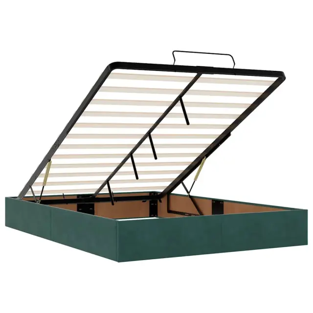 Ta okvir za posteljo otoman brezhibno združuje sodobno estetiko in praktično funkcionalnost ter vam ponuja rešitev za shranjevanje in udobno spanje. Mehak in udoben material: Vlažna tkanina iz žameta ima mehko in gladko površino, ki zagotavlja prijeten občutek ter vam zagotavlja toploto in popolno udobje.Veliko prostora za shranjevanje pod posteljo: Ta posteljni okvir ima prostoren prostor za shranjevanje pod posteljo, kar poveča vaš prostor brez dodatne talne površine. Zagotavlja dovolj prostora za shranjevanje predmetov, kot so dodatne odeje, vzglavniki in sezonska oblačila, zaradi česar je idealen za manjše ali bolj zaprte prostore.Priročen mehanizem za dvigovanje: Vgrajeni hidravlični dvižni mehanizem omogoča enostaven dostop do stvari, shranjenih pod posteljo. S preprostim potegom ročaja se podnožje letve gladko dvigne, tako da lahko hitro in brez napora vzamete svoje predmete.Vzmetna škatla ni potrebna: Okvir postelje ima letveno podlago, ki zagotavlja odlično oporo in zračnost za ležišče, zato ni potrebna vzmetnica. Dobro je vedeti:Vzmetnica ni priložena tej postelji. Ponujamo različno izbiro ležišč. V naši trgovini si lahko ogledate ustrezne vzmetnice.Barva: Temno zelenaMaterial: Žamet (100 % poliester), kovina, vezan les, inženirski lesCelotne dimenzije: 193 x 140 x 23,5 cm (D x Š x V)Velikost primerne vzmetnice: 140 x 190 cm (Š x D) (vzmetnica ni priložena)Maks. nosilnost: 280 kgShranjevanje pod posteljoHidravličen dvižni mehanizemPotrebno sestavljanje: Da