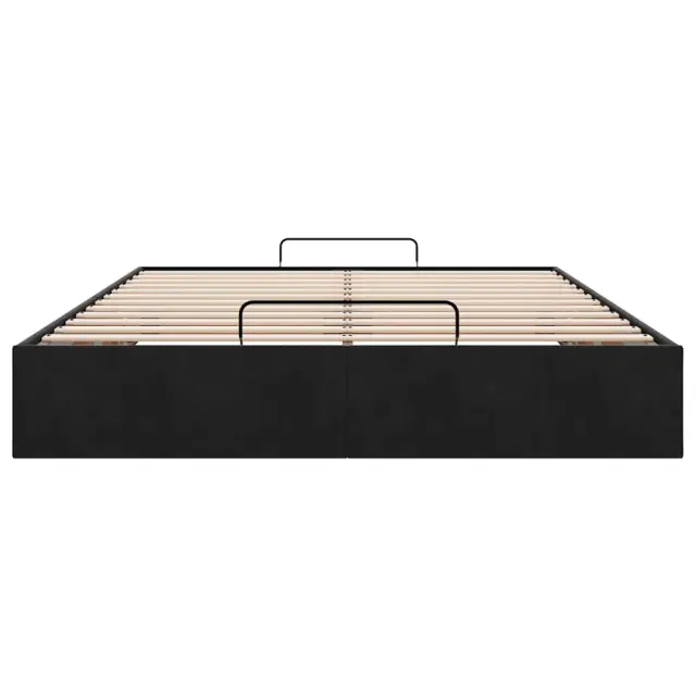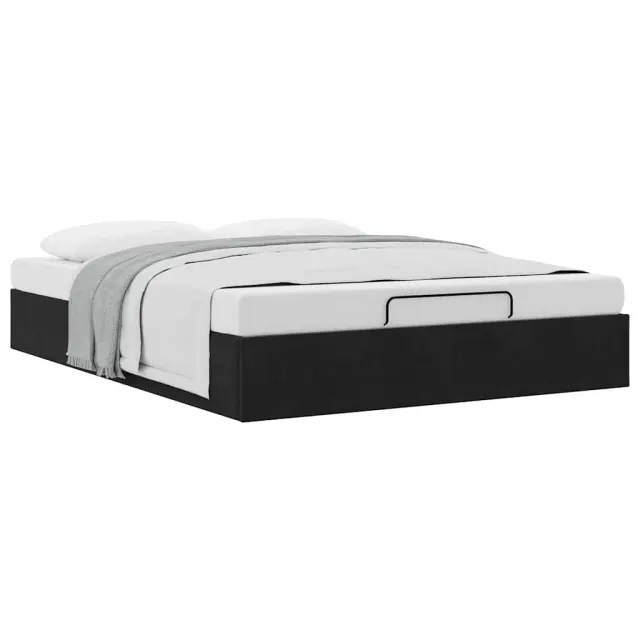 Ta okvir za posteljo otoman brezhibno združuje sodobno estetiko in praktično funkcionalnost ter vam ponuja rešitev za shranjevanje in udobno spanje. Mehak in udoben material: Vlažna tkanina iz žameta ima mehko in gladko površino, ki zagotavlja prijeten občutek ter vam zagotavlja toploto in popolno udobje.Veliko prostora za shranjevanje pod posteljo: Ta posteljni okvir ima prostoren prostor za shranjevanje pod posteljo, kar poveča vaš prostor brez dodatne talne površine. Zagotavlja dovolj prostora za shranjevanje predmetov, kot so dodatne odeje, vzglavniki in sezonska oblačila, zaradi česar je idealen za manjše ali bolj zaprte prostore.Priročen mehanizem za dvigovanje: Vgrajeni hidravlični dvižni mehanizem omogoča enostaven dostop do stvari, shranjenih pod posteljo. S preprostim potegom ročaja se podnožje letve gladko dvigne, tako da lahko hitro in brez napora vzamete svoje predmete.Vzmetna škatla ni potrebna: Okvir postelje ima letveno podlago, ki zagotavlja odlično oporo in zračnost za ležišče, zato ni potrebna vzmetnica. Dobro je vedeti:Vzmetnica ni priložena tej postelji. Ponujamo različno izbiro ležišč. V naši trgovini si lahko ogledate ustrezne vzmetnice.Barva: ČrnaMaterial: Žamet (100 % poliester), kovina, vezan les, inženirski lesCelotne dimenzije: 203 x 140 x 23,5 cm (D x Š x V)Velikost primerne vzmetnice: 140 x 200 cm (Š x D) (vzmetnica ni priložena)Maks. nosilnost: 280 kgShranjevanje pod posteljoHidravličen dvižni mehanizemPotrebno sestavljanje: Da