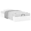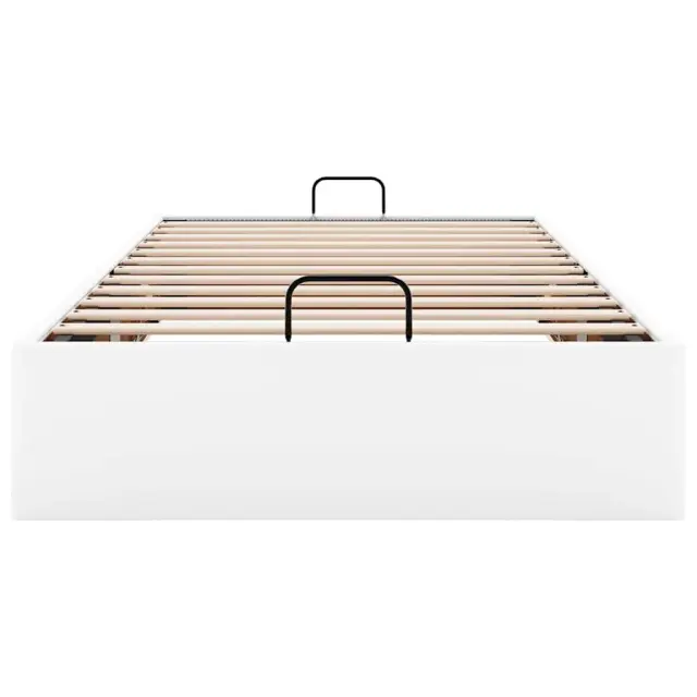 Ta okvir za posteljo otoman brezhibno združuje sodobno estetiko in praktično funkcionalnost ter vam ponuja rešitev za shranjevanje in udobno spanje. Dolgotrajno in enostavno vzdrževanje: Umetno usnje je zelo trpežen material, ki je odporen na madeže, zato ga zlahka očistite z vlažno krpo. Njegova gladka površina mu daje eleganten videz, ki spominja na pravo usnje.Veliko prostora za shranjevanje pod posteljo: Ta posteljni okvir ima prostoren prostor za shranjevanje pod posteljo, kar poveča vaš prostor brez dodatne talne površine. Zagotavlja dovolj prostora za shranjevanje predmetov, kot so dodatne odeje, vzglavniki in sezonska oblačila, zaradi česar je idealen za manjše ali bolj zaprte prostore.Priročen mehanizem za dvigovanje: Vgrajeni hidravlični dvižni mehanizem omogoča enostaven dostop do stvari, shranjenih pod posteljo. S preprostim potegom ročaja se podnožje letve gladko dvigne, tako da lahko hitro in brez napora vzamete svoje predmete.Vzmetna škatla ni potrebna: Okvir postelje ima letveno podlago, ki zagotavlja odlično oporo in zračnost za ležišče, zato ni potrebna vzmetnica. Dobro je vedeti:Vzmetnica ni priložena tej postelji. Ponujamo različno izbiro ležišč. V naši trgovini si lahko ogledate ustrezne vzmetnice.Barva: BelaMaterial: Umetno usnje (75 % polivinilklorid, 5 % bombaž, 20 % poliester), kovina, vezan les, konstruiran lesCelotne dimenzije: 203 x 90 x 23,5 cm (D x Š x V)Velikost primerne vzmetnice: 90 x 200 cm (Š x D) (vzmetnica ni priložena)Maks. nosilnost: 140 kgShranjevanje pod posteljoHidravličen dvižni mehanizemPotrebno sestavljanje: Da