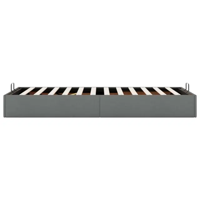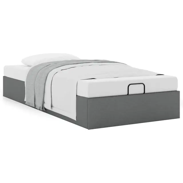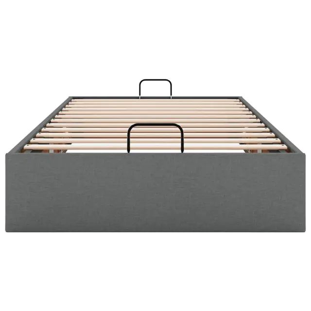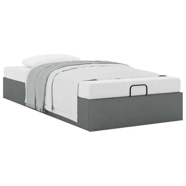 Ta okvir za posteljo otoman brezhibno združuje sodobno estetiko in praktično funkcionalnost ter vam ponuja rešitev za shranjevanje in udobno spanje. Mehak in trpežen material: Tkanina iz poliestra ponuja kombinacijo mehkobe, zračnosti in trpežnosti ter vam zagotavlja popolno udobje in prijetnost.Veliko prostora za shranjevanje pod posteljo: Ta posteljni okvir ima prostoren prostor za shranjevanje pod posteljo, kar poveča vaš prostor brez dodatne talne površine. Zagotavlja dovolj prostora za shranjevanje predmetov, kot so dodatne odeje, vzglavniki in sezonska oblačila, zaradi česar je idealen za manjše ali bolj zaprte prostore.Priročen mehanizem za dvigovanje: Vgrajeni hidravlični dvižni mehanizem omogoča enostaven dostop do stvari, shranjenih pod posteljo. S preprostim potegom ročaja se podnožje letve gladko dvigne, tako da lahko hitro in brez napora vzamete svoje predmete.Vzmetna škatla ni potrebna: Okvir postelje ima letveno podlago, ki zagotavlja odlično oporo in zračnost za ležišče, zato ni potrebna vzmetnica. Dobro je vedeti:Vzmetnica ni priložena tej postelji. Ponujamo različno izbiro ležišč. V naši trgovini si lahko ogledate ustrezne vzmetnice.Barva: Temno sivaMaterial: Tkanina (100 % poliester), kovina, vezan les, inženirski lesCelotne dimenzije: 203 x 100 x 23,5 cm (D x Š x V)Velikost primerne vzmetnice: 100 x 200 cm (Š x D) (vzmetnica ni priložena)Maks. nosilnost: 140 kgShranjevanje pod posteljoHidravličen dvižni mehanizemPotrebno sestavljanje: Da