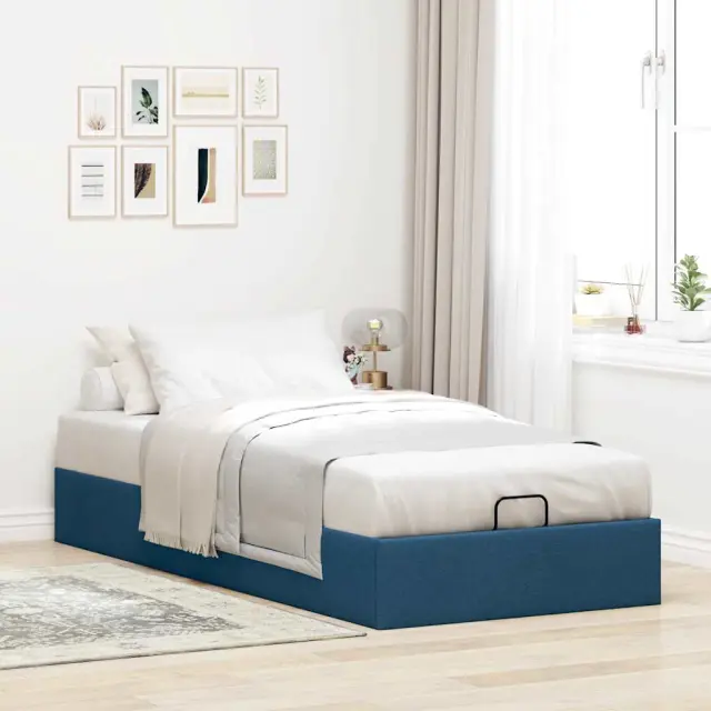 Ta okvir za posteljo otoman brezhibno združuje sodobno estetiko in praktično funkcionalnost ter vam ponuja rešitev za shranjevanje in udobno spanje. Mehak in trpežen material: Tkanina iz poliestra ponuja kombinacijo mehkobe, zračnosti in trpežnosti ter vam zagotavlja popolno udobje in prijetnost.Veliko prostora za shranjevanje pod posteljo: Ta posteljni okvir ima prostoren prostor za shranjevanje pod posteljo, kar poveča vaš prostor brez dodatne talne površine. Zagotavlja dovolj prostora za shranjevanje predmetov, kot so dodatne odeje, vzglavniki in sezonska oblačila, zaradi česar je idealen za manjše ali bolj zaprte prostore.Priročen mehanizem za dvigovanje: Vgrajeni hidravlični dvižni mehanizem omogoča enostaven dostop do stvari, shranjenih pod posteljo. S preprostim potegom ročaja se podnožje letve gladko dvigne, tako da lahko hitro in brez napora vzamete svoje predmete.Vzmetna škatla ni potrebna: Okvir postelje ima letveno podlago, ki zagotavlja odlično oporo in zračnost za ležišče, zato ni potrebna vzmetnica. Dobro je vedeti:Vzmetnica ni priložena tej postelji. Ponujamo različno izbiro ležišč. V naši trgovini si lahko ogledate ustrezne vzmetnice.Barva: ModraMaterial: Tkanina (100 % poliester), kovina, vezan les, inženirski lesCelotne dimenzije: 203 x 90 x 23,5 cm (D x Š x V)Velikost primerne vzmetnice: 90 x 200 cm (Š x D) (vzmetnica ni priložena)Maks. nosilnost: 140 kgShranjevanje pod posteljoHidravličen dvižni mehanizemPotrebno sestavljanje: Da