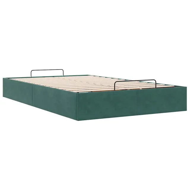 Ta okvir za posteljo otoman brezhibno združuje sodobno estetiko in praktično funkcionalnost ter vam ponuja rešitev za shranjevanje in udobno spanje. Mehak in udoben material: Vlažna tkanina iz žameta ima mehko in gladko površino, ki zagotavlja prijeten občutek ter vam zagotavlja toploto in popolno udobje.Veliko prostora za shranjevanje pod posteljo: Ta posteljni okvir ima prostoren prostor za shranjevanje pod posteljo, kar poveča vaš prostor brez dodatne talne površine. Zagotavlja dovolj prostora za shranjevanje predmetov, kot so dodatne odeje, vzglavniki in sezonska oblačila, zaradi česar je idealen za manjše ali bolj zaprte prostore.Priročen mehanizem za dvigovanje: Vgrajeni hidravlični dvižni mehanizem omogoča enostaven dostop do stvari, shranjenih pod posteljo. S preprostim potegom ročaja se podnožje letve gladko dvigne, tako da lahko hitro in brez napora vzamete svoje predmete.Vzmetna škatla ni potrebna: Okvir postelje ima letveno podlago, ki zagotavlja odlično oporo in zračnost za ležišče, zato ni potrebna vzmetnica. Dobro je vedeti:Vzmetnica ni priložena tej postelji. Ponujamo različno izbiro ležišč. V naši trgovini si lahko ogledate ustrezne vzmetnice.Barva: Temno zelenaMaterial: Žamet (100 % poliester), kovina, vezan les, inženirski lesCelotne dimenzije: 203 x 120 x 23,5 cm (D x Š x V)Velikost primerne vzmetnice: 120 x 200 cm (Š x D) (vzmetnica ni priložena)Maks. nosilnost: 280 kgShranjevanje pod posteljoHidravličen dvižni mehanizemPotrebno sestavljanje: Da