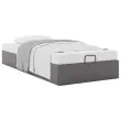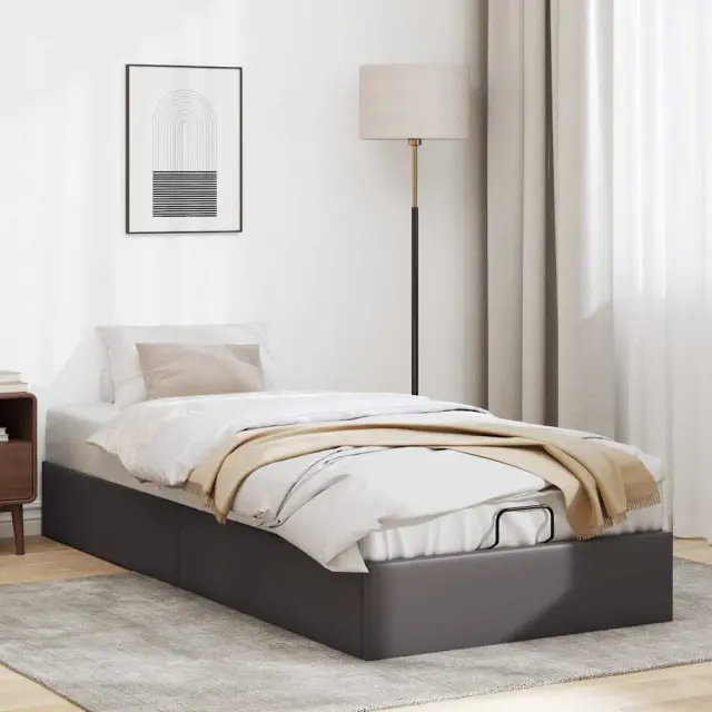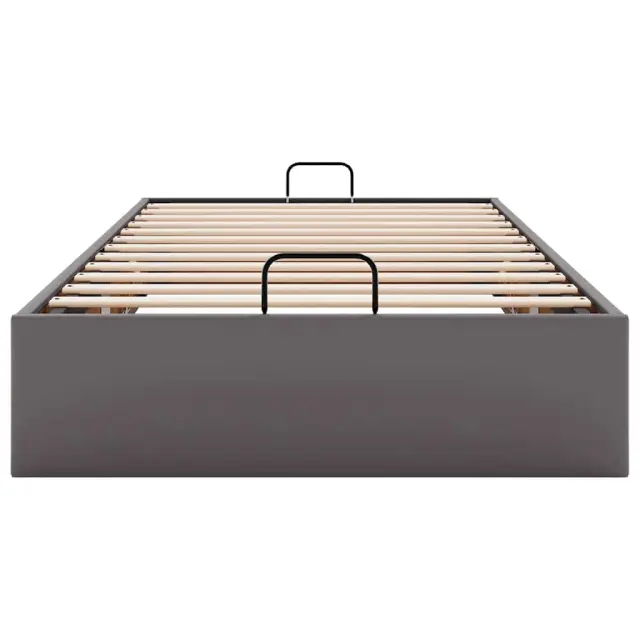 Ta okvir za posteljo otoman brezhibno združuje sodobno estetiko in praktično funkcionalnost ter vam ponuja rešitev za shranjevanje in udobno spanje. Dolgotrajno in enostavno vzdrževanje: Umetno usnje je zelo trpežen material, ki je odporen na madeže, zato ga zlahka očistite z vlažno krpo. Njegova gladka površina mu daje eleganten videz, ki spominja na pravo usnje.Veliko prostora za shranjevanje pod posteljo: Ta posteljni okvir ima prostoren prostor za shranjevanje pod posteljo, kar poveča vaš prostor brez dodatne talne površine. Zagotavlja dovolj prostora za shranjevanje predmetov, kot so dodatne odeje, vzglavniki in sezonska oblačila, zaradi česar je idealen za manjše ali bolj zaprte prostore.Priročen mehanizem za dvigovanje: Vgrajeni hidravlični dvižni mehanizem omogoča enostaven dostop do stvari, shranjenih pod posteljo. S preprostim potegom ročaja se podnožje letve gladko dvigne, tako da lahko hitro in brez napora vzamete svoje predmete.Vzmetna škatla ni potrebna: Okvir postelje ima letveno podlago, ki zagotavlja odlično oporo in zračnost za ležišče, zato ni potrebna vzmetnica. Dobro je vedeti:Vzmetnica ni priložena tej postelji. Ponujamo različno izbiro ležišč. V naši trgovini si lahko ogledate ustrezne vzmetnice.Barva: SivaMaterial: Umetno usnje (75 % polivinilklorid, 5 % bombaž, 20 % poliester), kovina, vezan les, konstruiran lesCelotne dimenzije: 203 x 90 x 23,5 cm (D x Š x V)Velikost primerne vzmetnice: 90 x 200 cm (Š x D) (vzmetnica ni priložena)Maks. nosilnost: 140 kgShranjevanje pod posteljoHidravličen dvižni mehanizemPotrebno sestavljanje: Da