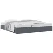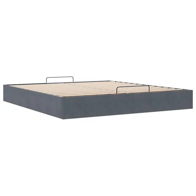 Ta okvir za posteljo otoman brezhibno združuje sodobno estetiko in praktično funkcionalnost ter vam ponuja rešitev za shranjevanje in udobno spanje. Mehak in udoben material: Vlažna tkanina iz žameta ima mehko in gladko površino, ki zagotavlja prijeten občutek ter vam zagotavlja toploto in popolno udobje.Veliko prostora za shranjevanje pod posteljo: Ta posteljni okvir ima prostoren prostor za shranjevanje pod posteljo, kar poveča vaš prostor brez dodatne talne površine. Zagotavlja dovolj prostora za shranjevanje predmetov, kot so dodatne odeje, vzglavniki in sezonska oblačila, zaradi česar je idealen za manjše ali bolj zaprte prostore.Priročen mehanizem za dvigovanje: Vgrajeni hidravlični dvižni mehanizem omogoča enostaven dostop do stvari, shranjenih pod posteljo. S preprostim potegom ročaja se podnožje letve gladko dvigne, tako da lahko hitro in brez napora vzamete svoje predmete.Vzmetna škatla ni potrebna: Okvir postelje ima letveno podlago, ki zagotavlja odlično oporo in zračnost za ležišče, zato ni potrebna vzmetnica. Dobro je vedeti:Vzmetnica ni priložena tej postelji. Ponujamo različno izbiro ležišč. V naši trgovini si lahko ogledate ustrezne vzmetnice.Barva: Temno sivaMaterial: Žamet (100 % poliester), kovina, vezan les, inženirski lesCelotne dimenzije: 203 x 180 x 23,5 cm (D x Š x V)Velikost primerne vzmetnice: 180 x 200 cm (Š x D) (vzmetnica ni priložena)Maks. nosilnost: 280 kgShranjevanje pod posteljoHidravličen dvižni mehanizemPotrebno sestavljanje: Da