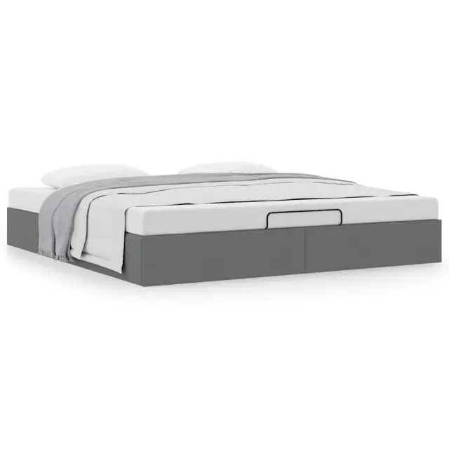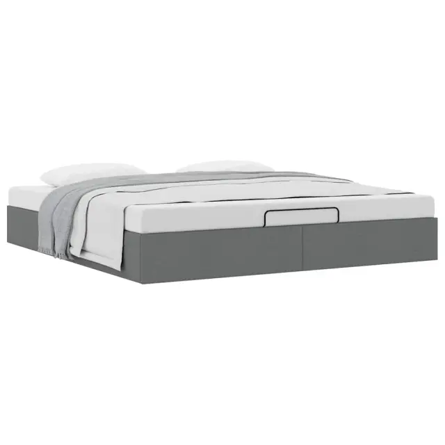 Ta okvir za posteljo otoman brezhibno združuje sodobno estetiko in praktično funkcionalnost ter vam ponuja rešitev za shranjevanje in udobno spanje. Mehak in trpežen material: Tkanina iz poliestra ponuja kombinacijo mehkobe, zračnosti in trpežnosti ter vam zagotavlja popolno udobje in prijetnost.Veliko prostora za shranjevanje pod posteljo: Ta posteljni okvir ima prostoren prostor za shranjevanje pod posteljo, kar poveča vaš prostor brez dodatne talne površine. Zagotavlja dovolj prostora za shranjevanje predmetov, kot so dodatne odeje, vzglavniki in sezonska oblačila, zaradi česar je idealen za manjše ali bolj zaprte prostore.Priročen mehanizem za dvigovanje: Vgrajeni hidravlični dvižni mehanizem omogoča enostaven dostop do stvari, shranjenih pod posteljo. S preprostim potegom ročaja se podnožje letve gladko dvigne, tako da lahko hitro in brez napora vzamete svoje predmete.Vzmetna škatla ni potrebna: Okvir postelje ima letveno podlago, ki zagotavlja odlično oporo in zračnost za ležišče, zato ni potrebna vzmetnica. Dobro je vedeti:Vzmetnica ni priložena tej postelji. Ponujamo različno izbiro ležišč. V naši trgovini si lahko ogledate ustrezne vzmetnice.Barva: Temno sivaMaterial: Tkanina (100 % poliester), kovina, vezan les, inženirski lesCelotne dimenzije: 203 x 180 x 23,5 cm (D x Š x V)Velikost primerne vzmetnice: 180 x 200 cm (Š x D) (vzmetnica ni priložena)Maks. nosilnost: 140 kgShranjevanje pod posteljoHidravličen dvižni mehanizemPotrebno sestavljanje: Da