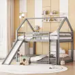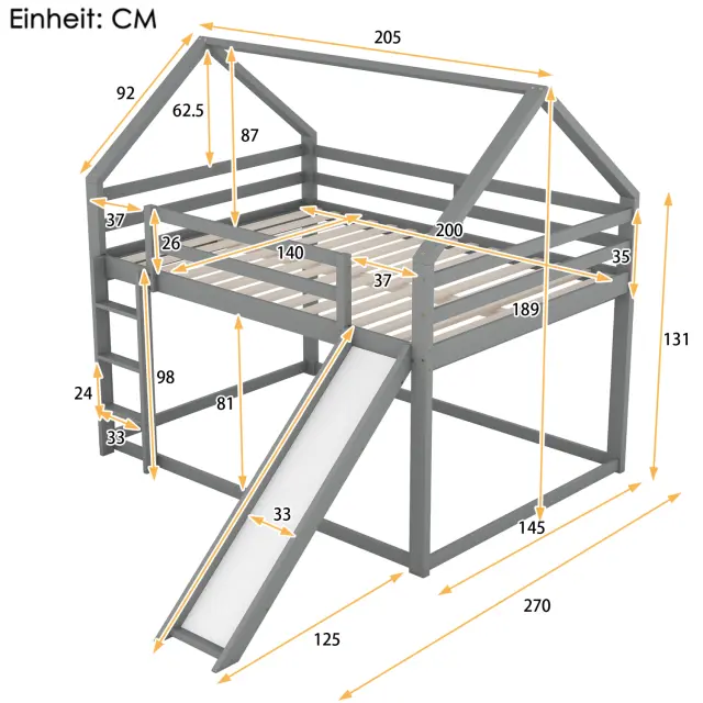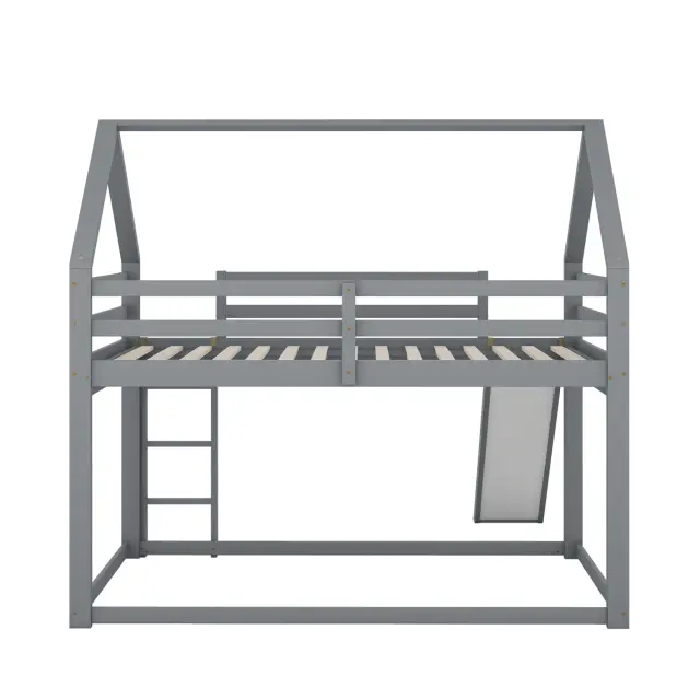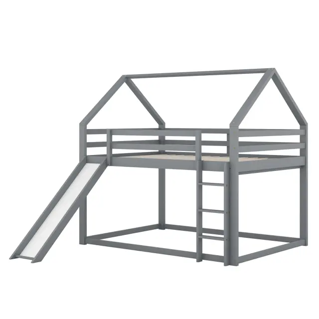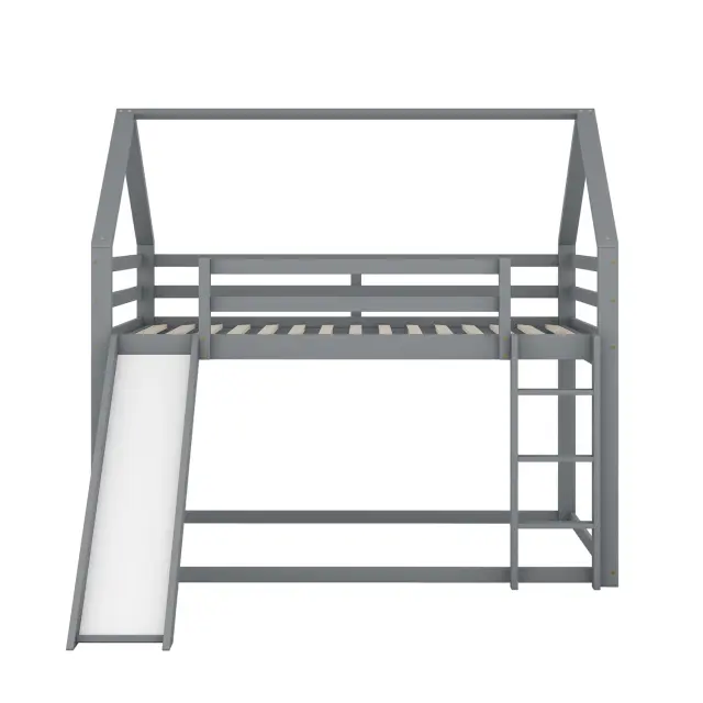 Otroška hišica z dvojno pogradno posteljjo in toboganom, siva, 140x200 cm