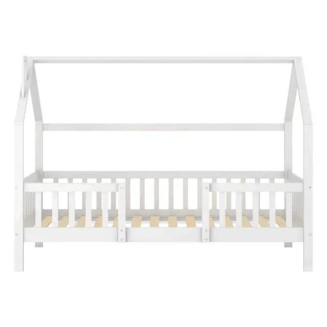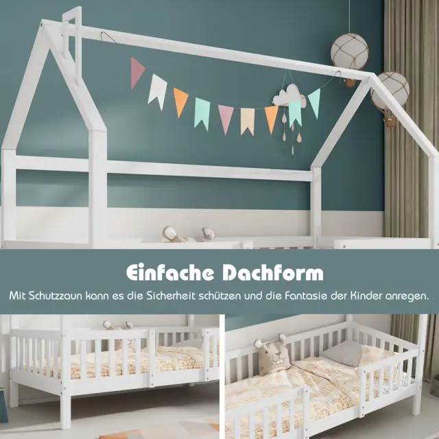 Otroška hišna postelja s kaminom, borov les, 90x200 cm, bela