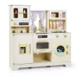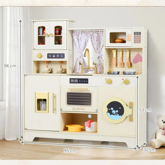 Spodbudite otrokovo domišljijo s to leseno igralno kuhinjo, ki omogoča neskončno kulinarično ustvarjalnost in ima številne igralne kuhinjske aparate. Z dvema realističnima kuhalnikoma s klikanjem ter vgrajenimi aparatom za kavo, dozirnikom za ledene kocke, pečico in mikrovalovno pečico spreminja igro v razburljivo kuharsko izkušnjo. Pospravljanje je zabavno in realistično zaradi pipe, pomivalnega korita in pomivalnega stroja. Igralna kuhinja je izdelana iz naravnih, visoko trdnih materialov in zagotavlja dolgo življenjsko dobo.