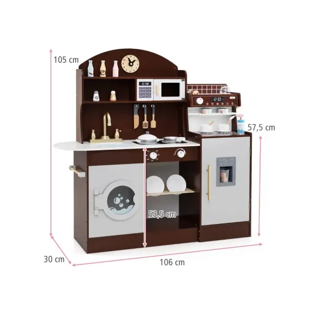 Otroška kuhinja s 27 dodatki Lesena igralna kuhinja