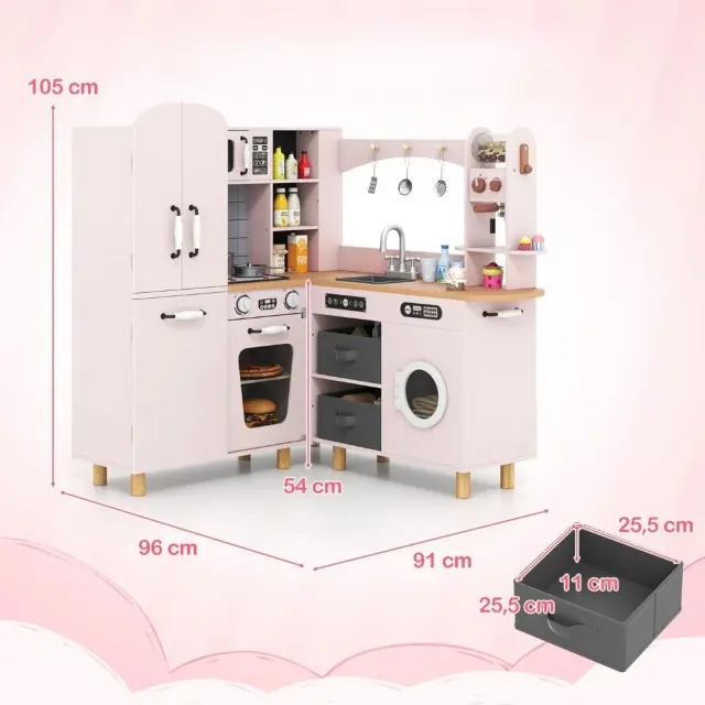 Otroška kuhinja s kavnim aparatom in pralnim strojem roza