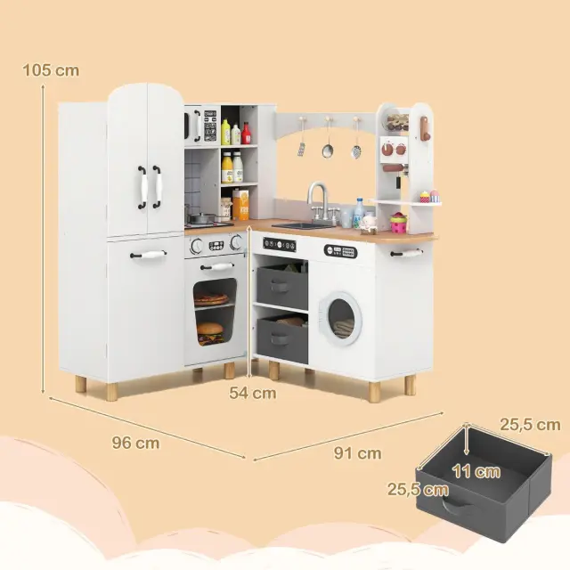 Otroška kuhinja s kavnim in pralnim strojem bele barve