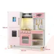 Kuhalnik in kuhalna plošča v tej kuhinji za otroke so opremljeni s svetlobnimi in zvočnimi funkcijami, gumbi pa z zvokom klikanja zagotavljajo realistično izkušnjo kuhanja. Ta leseni igralni kuhinjski set z izdelovalcem ledu, mikrovalovno pečico, pomivalnim koritom, kredo, pečico in žarom za žar ponuja široko paleto igralnih možnosti za domiselne kuharje.