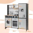 Potopite se v svet kulinarične domišljije z našim igralnim kuhinjskim setom, ki je zasnovan tako, da otroke navdihuje za ure ustvarjalne igre. Ta kuhinja je opremljena z različnimi interaktivnimi funkcijami, vključno s pomivalnim koritom s pipo, pralnim strojem, pečico, mikrovalovno pečico, aparatom za pripravo sladoleda in kuhalnikom ter dodatki, kot so lonec, ponev, pribor, skodelice in ledene kocke. Poleg tega lahko realistični stroj za led razporedi kocke ledu, kuhalna plošča s klikajočimi zvočnimi gumbi pa proizvaja realistične zvoke in luči, tako da se otroci lahko vživijo v vlogo kuharja. Za varnost poskrbijo visokokakovostni materiali, dodatne podporne noge pa zagotavljajo stabilnost med igro. Kljub temu ta komplet ne more biti le zabavna igrača za otroke, temveč se lahko uporablja tudi kot prostor za shranjevanje, da je soba urejena. Razveselite otroka z interaktivnimi igralnimi elementi s tem bogatim kuhinjskim setom za učenje in razvijanje pomembnih spretnosti.