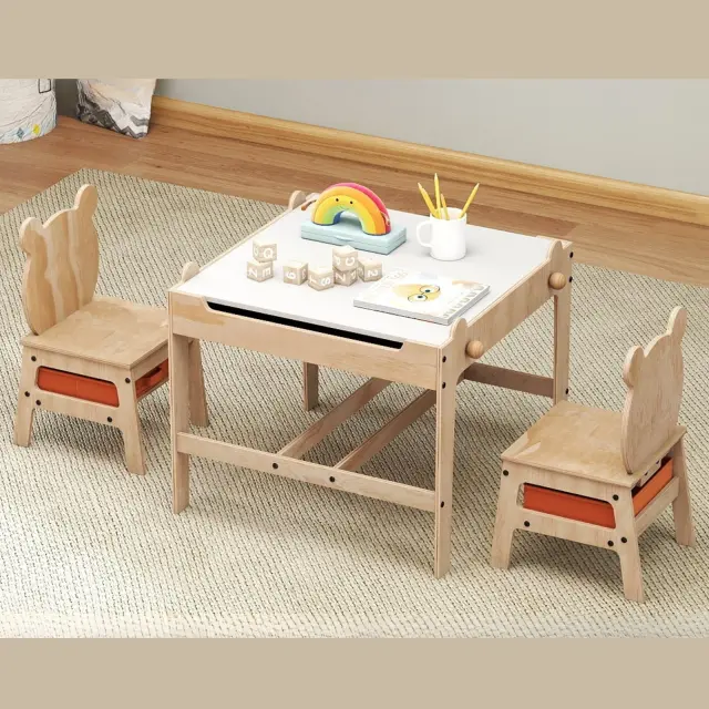 Robustna konstrukcija in varna uporaba: Ta komplet otroške igralne mize je izdelan iz visokokakovostnega inženirskega lesa z ojačanimi prečnimi prečkami, zato zagotavlja visoko odpornost in vzdržljivost. Zaobljeni vogali povečujejo varnost. V skladu s standardi ASTM in CPSIA.