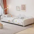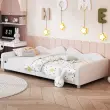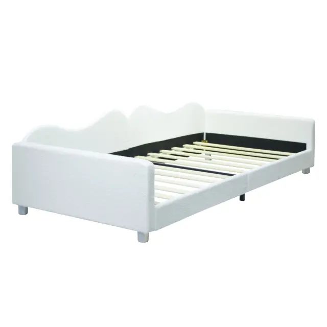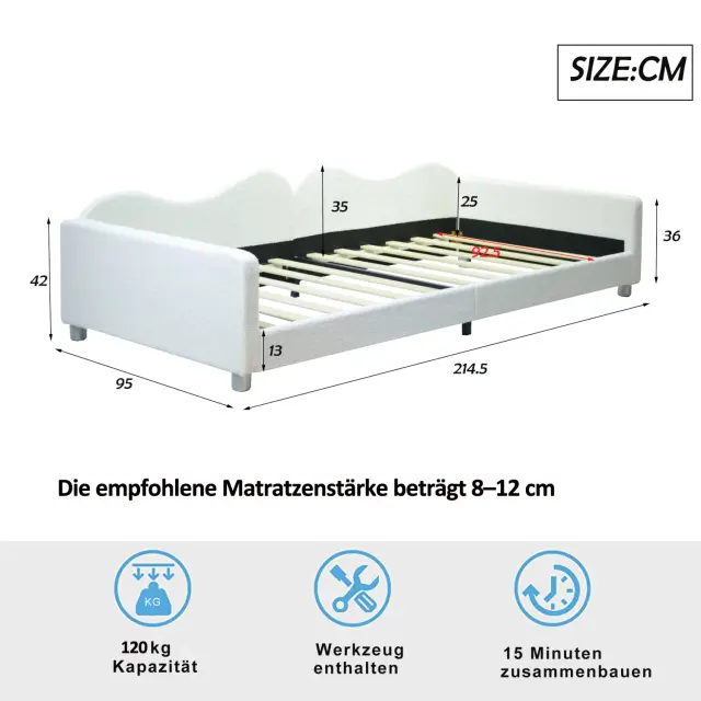 Otroška oblazinjena postelja 90x200cm, raztegljiv kavč iz blaga z naslonjalom in nasloni za roke, otroška/gostovska postelja, bela.