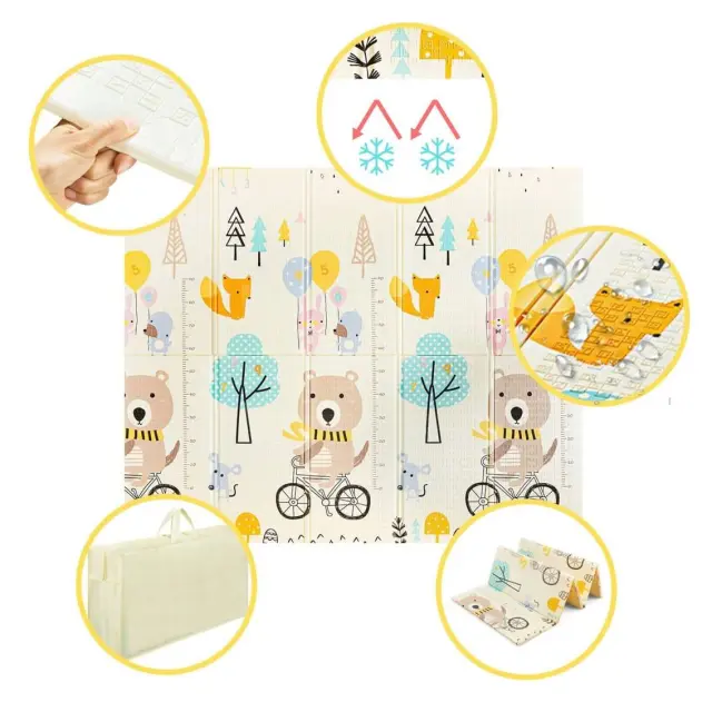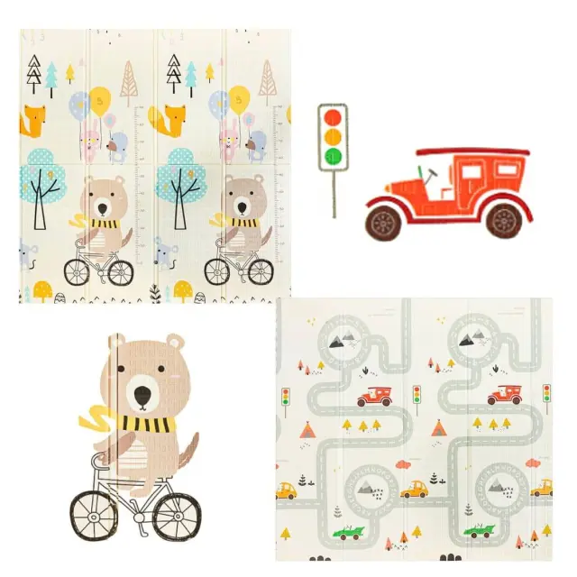 Otroška pena podloga 10 mm za igro zložljiva "Medvedek na kolesu" 200 x 180 cm