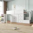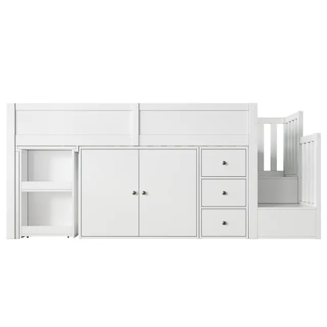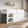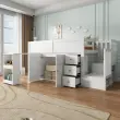 Otroška podstrešna postelja z mizo, omaro, predalom in stopnicami, bela