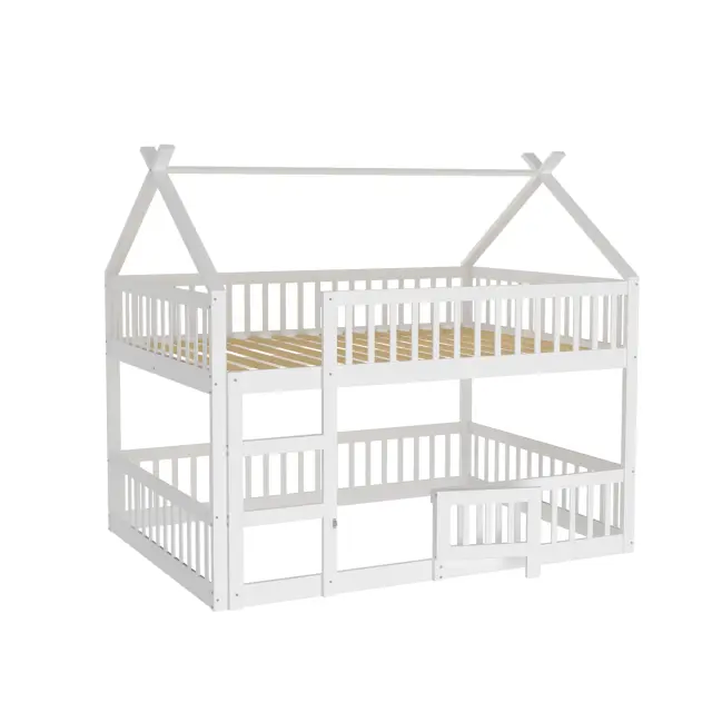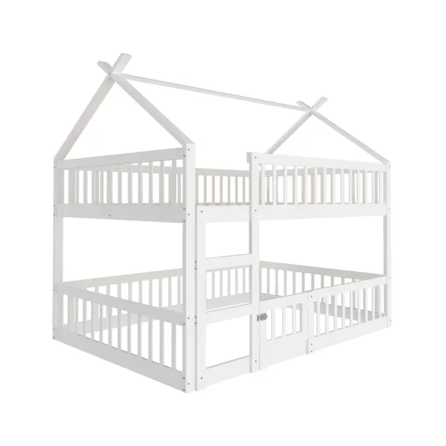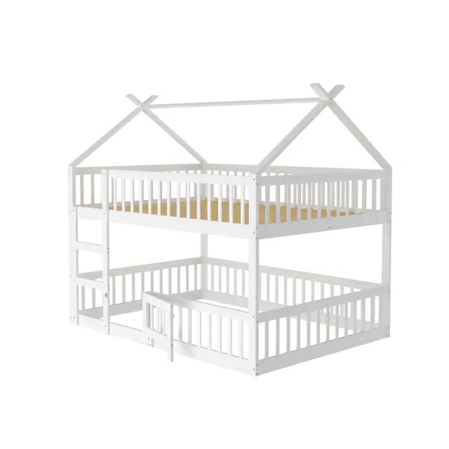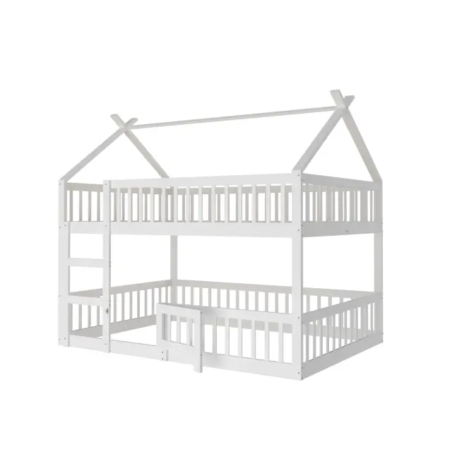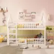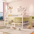 Otroška pogradna postelja 140x200 s stopnicami, mansardni dizajn, okvir iz masivnega lesa, bela