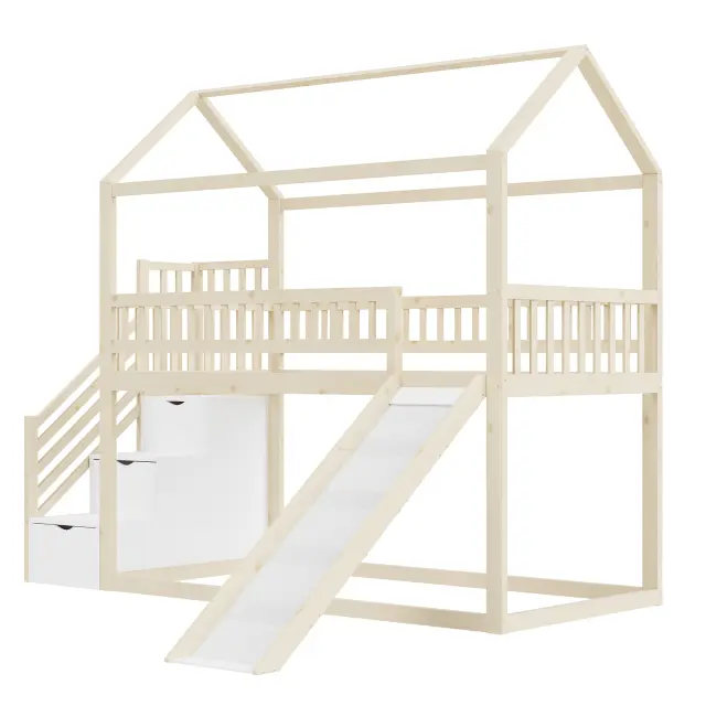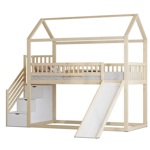 Otroška pogradna postelja 90x200 cm s toboganom in lestvijo za shranjevanje, postelja iz masivnega lesa