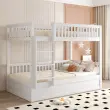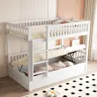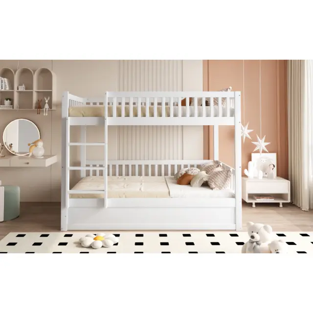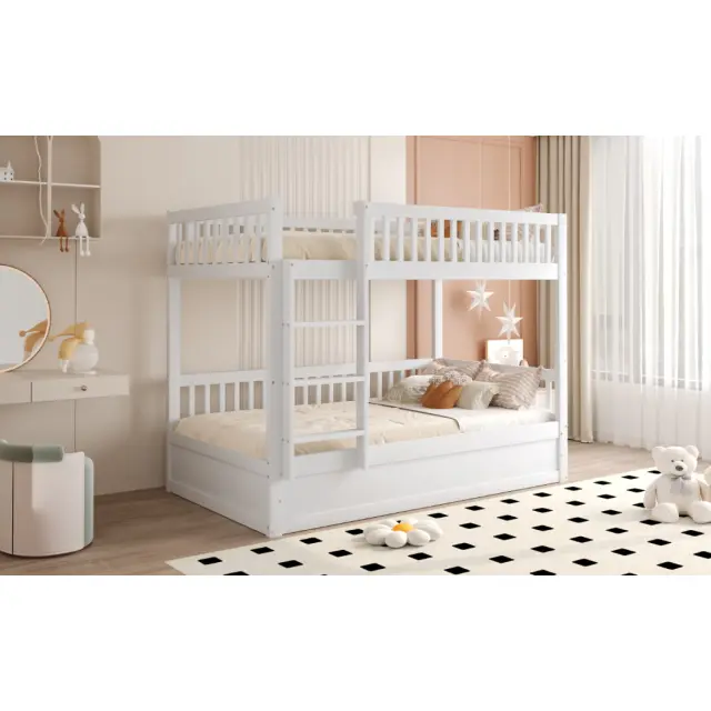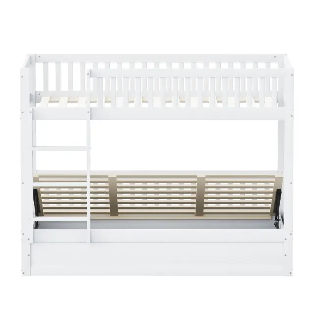 Otroška pogradna postelja 90x200 iz masivnega lesa s hidravličnim ležajem, robustna, bela.