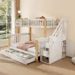 Otroška pogradna postelja s stopnicami in omaro za shranjevanje, bela/naravna