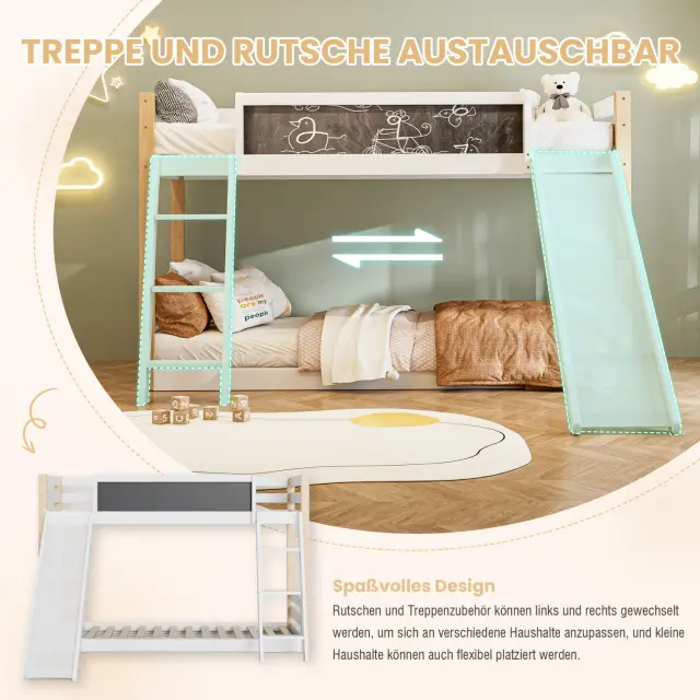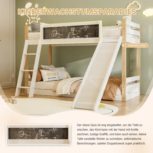 Otroška pogradna postelja s toboganom in stopnicami, les+PB, vzmetnice 90x200/190 cm