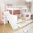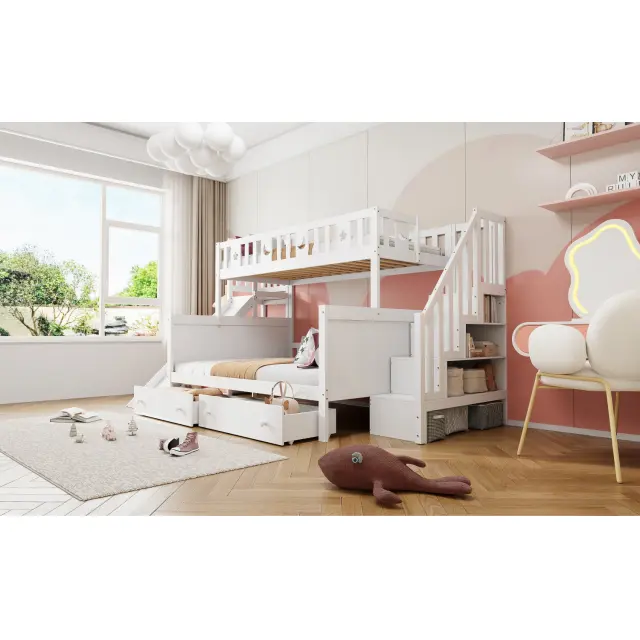Otroška pogradna postelja s toboganom, polico, predali in letvenim dnom, bela