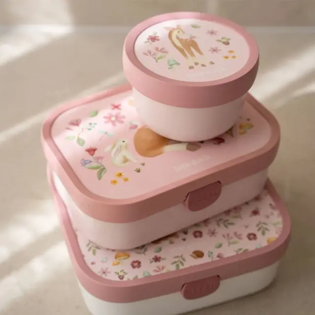 Robustna in funkcionalna otroška škatla – Mepal Lunch Box Fairy Garden je idealna za shranjevanje in prenašanja malice ter kosila. Tako so možnosti za odlično otroško kosilo skoraj neskončne. Svež kruh in pisano sadje? Ali obilna malica za šolo? Koščki sira, klobase, oreščki ali suho sadje? Z dvema ločenima predelkoma posoda vedno ohranja vse v škatli za kosilo čudovito sveže. Predelka lahko tudi odstranite in dobite posodo v katero lahko shranite tudi več sendvičev.