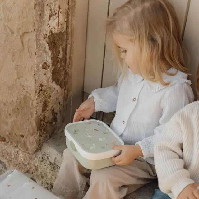 Robustna in funkcionalna otroška škatla – Mepal Lunch Box Little Farm je idealna za shranjevanje in prenašanja malice ter kosila. Tako so možnosti za odlično otroško kosilo skoraj neskončne. Svež kruh in pisano sadje? Ali obilna malica za šolo? Koščki sira, klobase, oreščki ali suho sadje? Z dvema ločenima predelkoma posoda vedno ohranja vse v škatli za kosilo čudovito sveže. Predelka lahko tudi odstranite in dobite posodo v katero lahko shranite tudi več sendvičev.