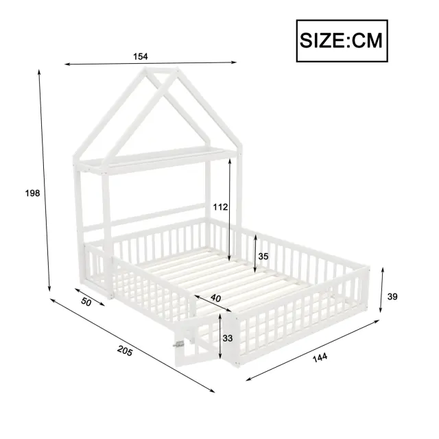 Otroška postelja 140x200 iz masivnega lesa s prostorom za shranjevanje, bela