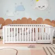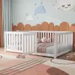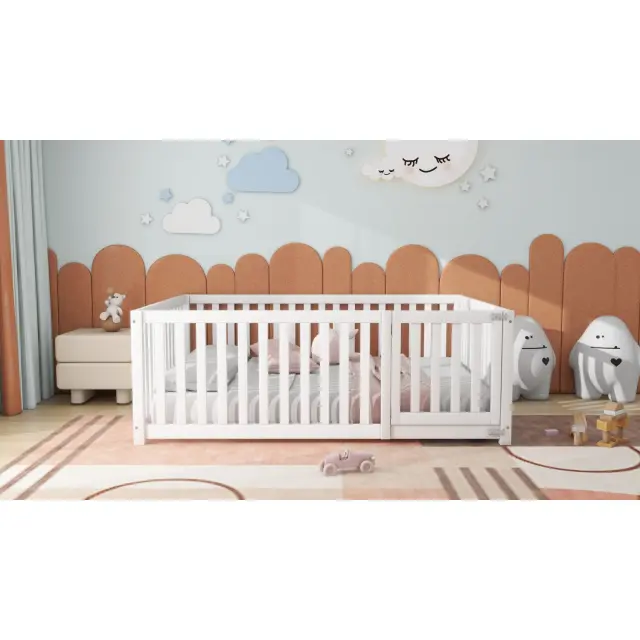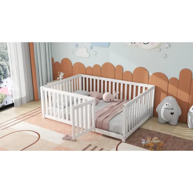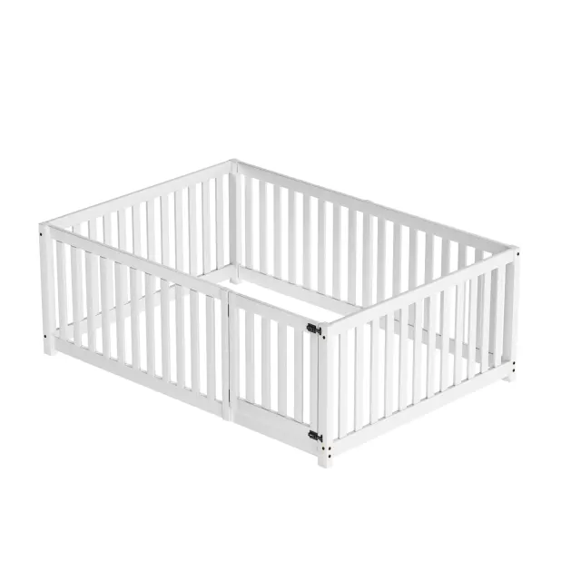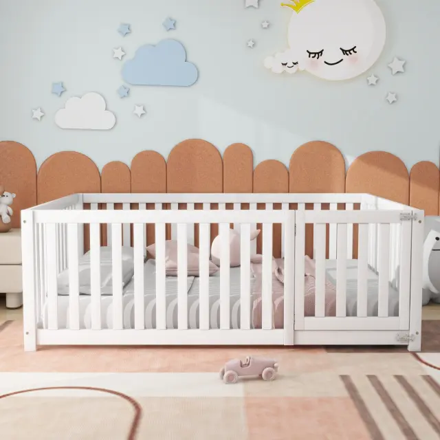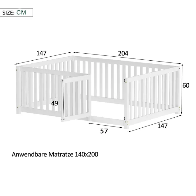 Otroška postelja 140x200, lesena postelja z ograjo in vrati, bela