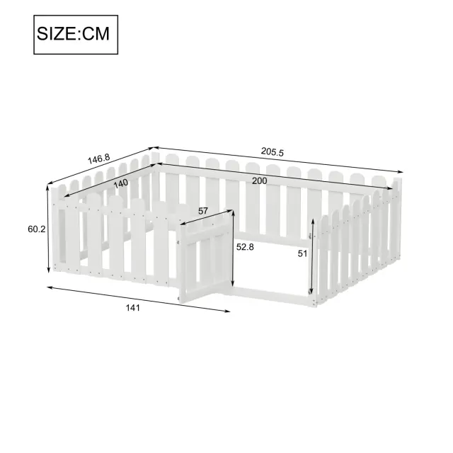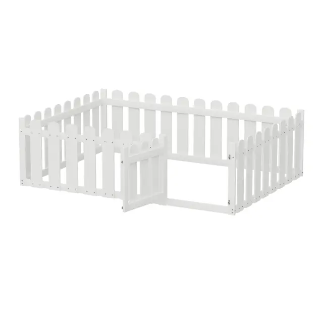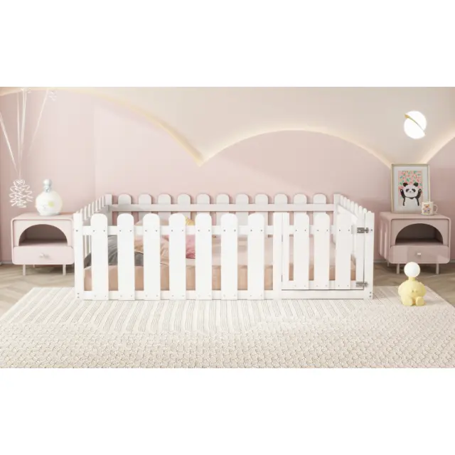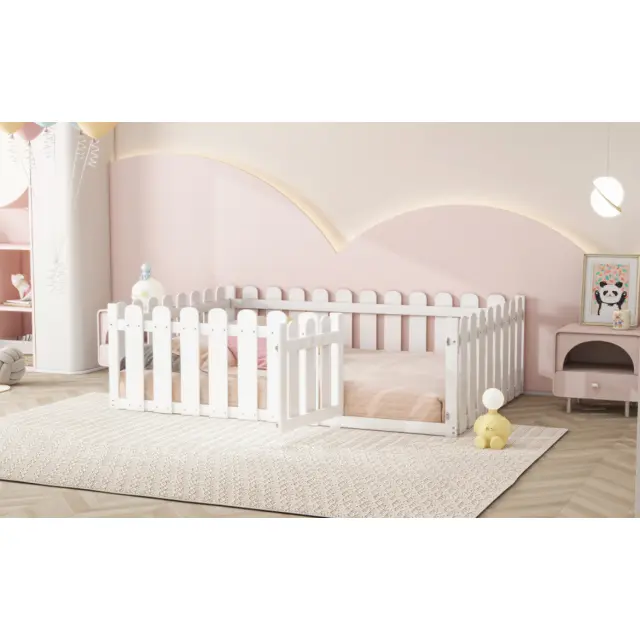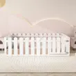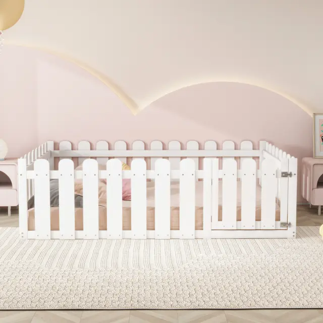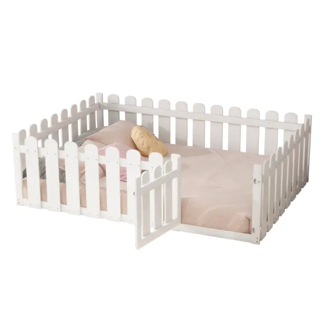 Otroška postelja 140x200cm, lesena, bela, z obrobo in vrati