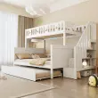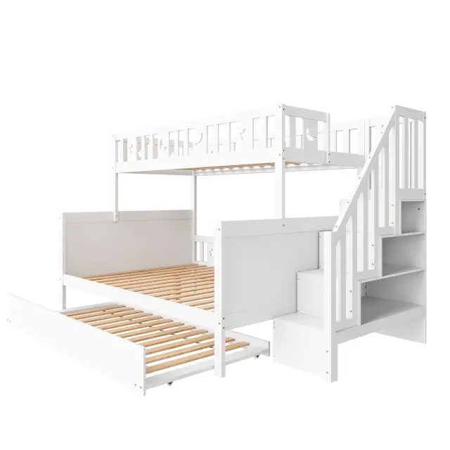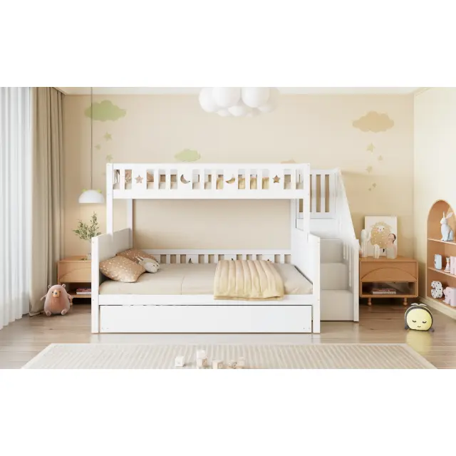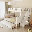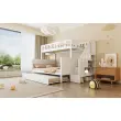Otroška postelja 90x200/140x200cm, pograd iz masivnega lesa s stopnicami, zložljiva postelja, bela